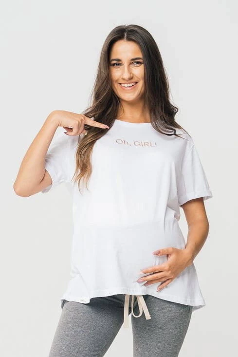 T-Shirt, übergroßes Schwangerschafts- und Still-T-Shirt Oh, Girl! - Weiß