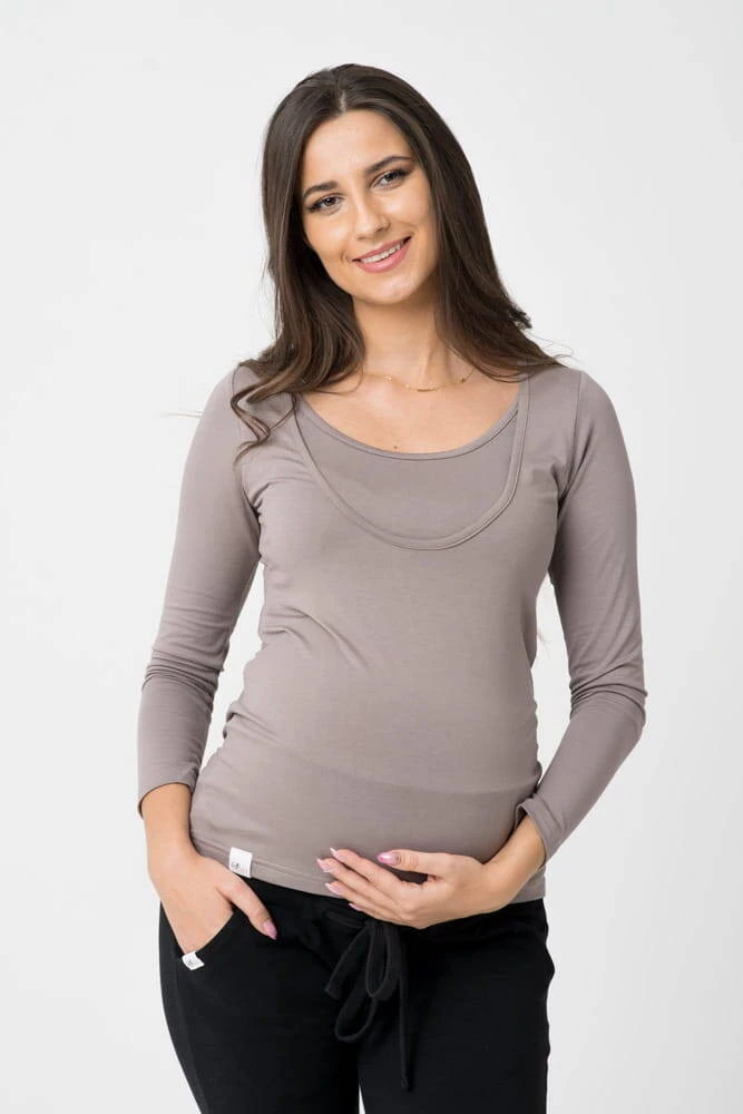 Langärmlige Umstands- und Stillbluse NOW AND THEN - Dunkelbeige