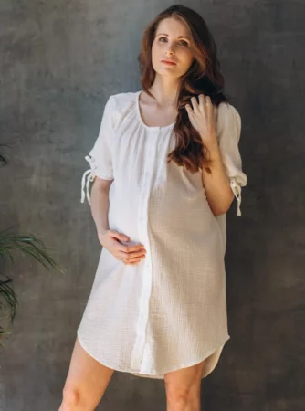 Musselin-Umstandskleid für Wehen und Stillen OAT Latte – Weiß