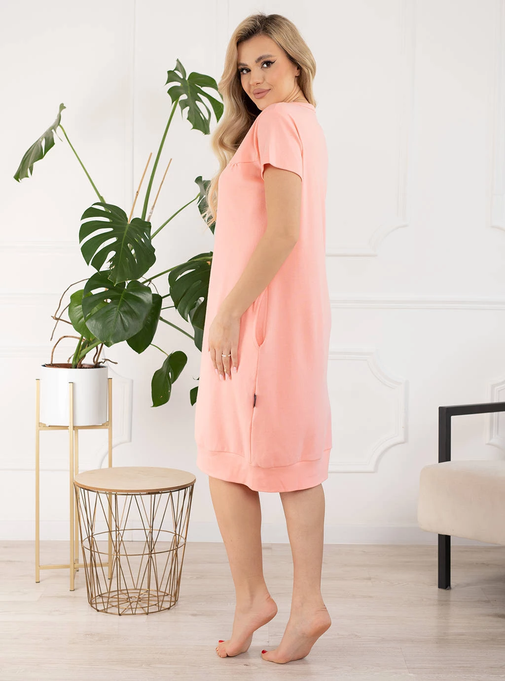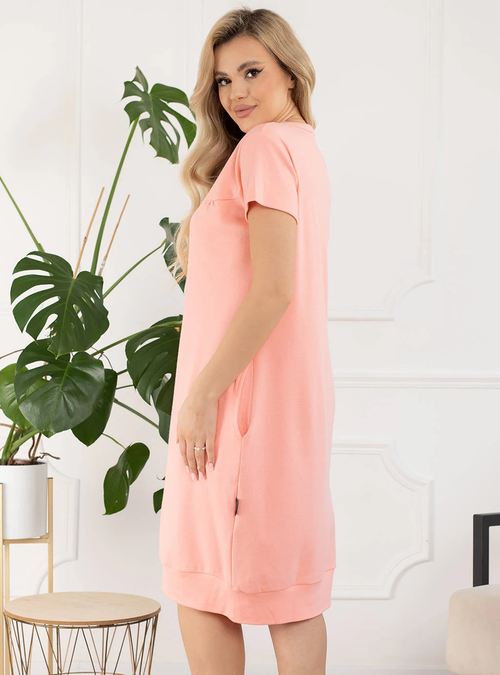 Umstandsshirt in einem pastelligen Apricot-Ton mit einem hübschen Schnitt, der an ein Bombenkleid erinnert. Das Sunny Shirt hat unten einen gerippten Saum und oben schöne Abnäher. Die midilangen Umstandsshirts der Sunny-Kollektion sind in sanften Pastelltönen oder klassischen Farben gehalten, aus hochwertiger Baumwolle für Ihren Komfort, mit Taschen und nickelfreien Druckknöpfen, die das Stillen erleichtern. Wenn Sie sich für das apricotfarbene Sunny entscheiden, können Sie problemlos Umstandskleidung wie ein Kleid oder eine Tunika ersetzen und sehen trotzdem attraktiv und feminin aus. Erleben Sie noch heute den Komfort und die Bequemlichkeit von Baumwollstoffen, wählen Sie Pastelltöne in unserem Online-Shop und genießen Sie Ihren Sunny Midi auf dem Weg ins Krankenhaus und während Ihrer Schwangerschaft.