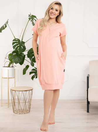 Ein in der Mitte aufgeknöpftes Umstands- und Stillhemd mit nickelfreien Verschlüssen ist eine naheliegende Wahl, die zu Ihrer Erstausstattung gehören sollte. Bei der Wahl eines Stillshirts von Formommy setzt die junge Mutter auf polnische Produkte und hochwertige Stoffe in einem Lachston. Mit der Auswahl in unserem Angebot haben Sie die Gewissheit, dass Ihr Baby leicht und schnell an die Brust kommt, wenn es hungrig ist. Sie fühlen sich wohl, weil Sie auf sich und Ihren Körper achten, denn das apricotfarbene Hemd wird alle Ihre Erwartungen erfüllen.