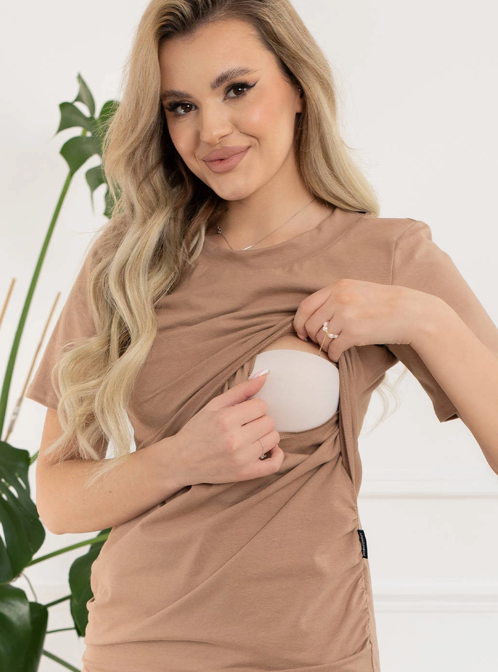 Ciąża oraz pierwsze dni po porodzie są dla wielu kobiet czasem, w którym liczy się nie tylko wygoda, ale również poczucie atrakcyjności. Stylowa podomka do szpitala prezentuje się naprawdę ciekawie. Różowy wzór flamingów na granatowej koszuli ciążowej  to doskonałe połączenie. Krój koszuli nocnej jest dość luźny, ale jednocześnie nie workowaty, dzięki czemu nie zniekształca sylwetki. Długość do kolan pozwala czuć się komfortowo zarówno w domu, jak i w szpitalu.