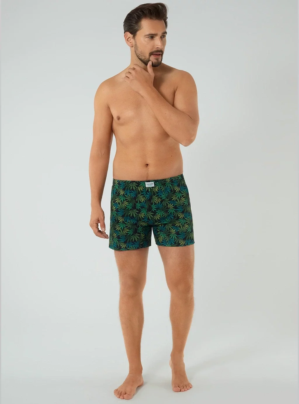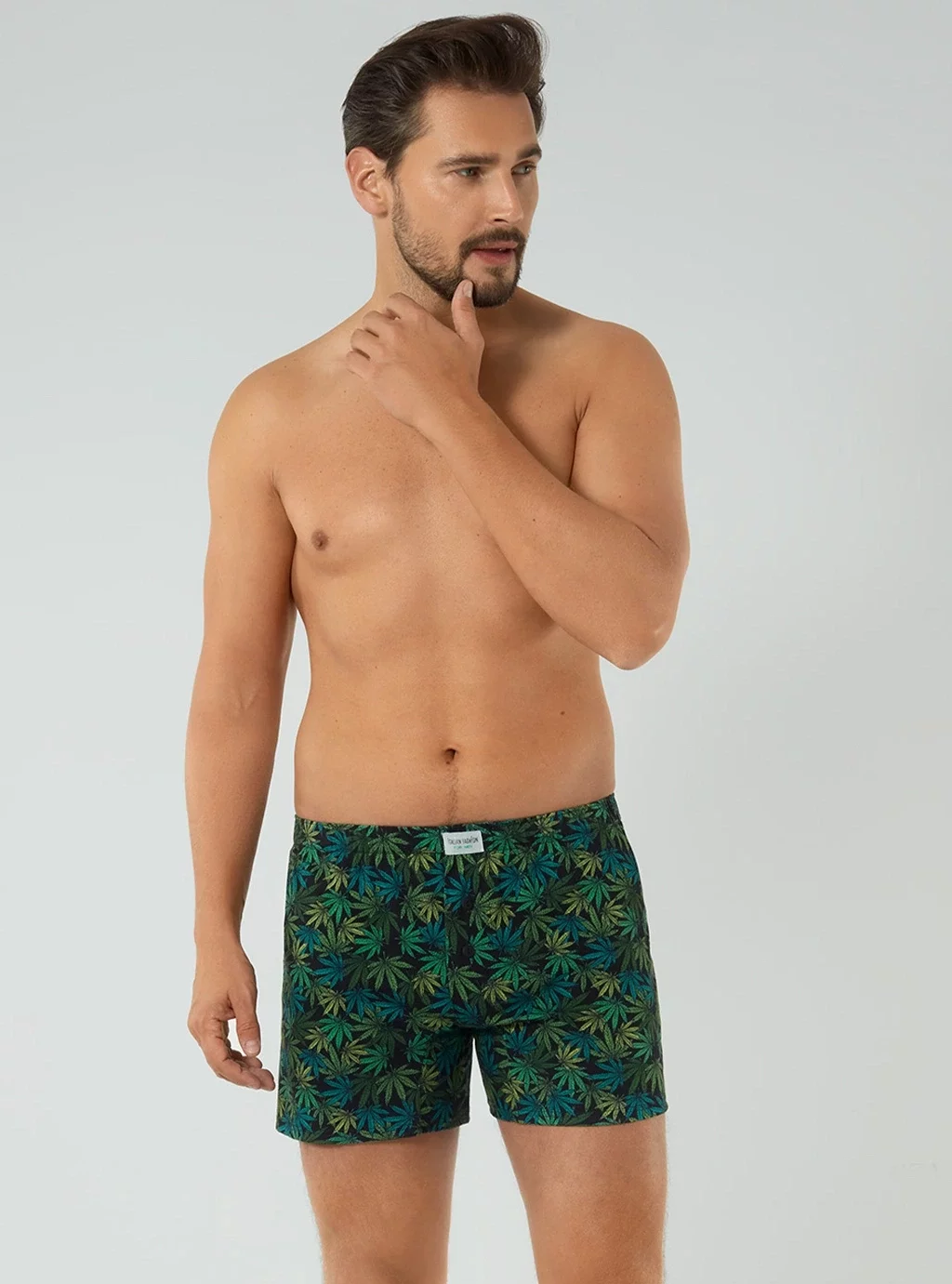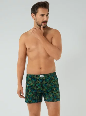 Lernen Sie die Herren-Boxershorts Chill aus Baumwolle kennen, die modernen Stil mit außergewöhnlichem Komfort verbinden. Sie bestehen aus Baumwolle höchster Qualität und bieten den ganzen Tag über unglaublichen Komfort. Das charakteristische Muster mit Blättern in Grün- und Blautönen verleiht ihnen einen einzigartigen, modischen Look, der perfekt zum lässigen Stil passt. Die Baumwolle, aus der die Herren-Boxershorts Chill gefertigt sind, ist weich, atmungsaktiv und hautfreundlich. Dank ihrer natürlichen Eigenschaften sind diese Boxershorts die perfekte Wahl für jede Jahreszeit. Das Blattmuster verleiht ihnen Frische und Stil, der sich von traditioneller Herrenunterwäsche abhebt.