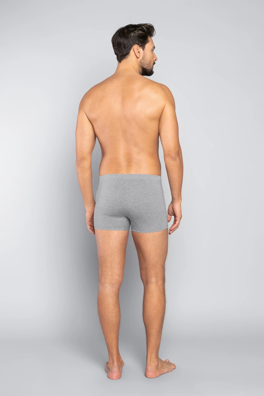 Herren-Boxershorts aus der Dallas-Kollektion in Melange-Farbe sind eine Kombination aus klassischem Stil und modernem Komfort. Sie bestehen aus Stoff höchster Qualität und garantieren unübertroffenen Komfort und Haltbarkeit. Der sportliche Schnitt dieser Boxershorts macht sie zu einer idealen Wahl sowohl für den Alltag als auch unter einem Anzug. Bequeme Boxershorts bestehen aus zarter, luftiger Viskose mit einem kleinen Elasthan-Anteil. Dank dieses Materials passt sich die Unterwäsche perfekt der Figur an, schränkt die Bewegungsfreiheit nicht ein und sorgt den ganzen Tag über für ein Frischegefühl. Viskose ist für ihre atmungsaktiven Eigenschaften und Weichheit bekannt und eignet sich daher ideal für Unterwäsche. Sorgfältig verarbeitete Nähte und ein elastischer Bund sorgen für Langlebigkeit und Tragekomfort. Der breite, weiche Gürtel drückt nicht, verursacht keine Beschwerden und sorgt durch seine Elastizität für eine perfekte Passform am Körper.