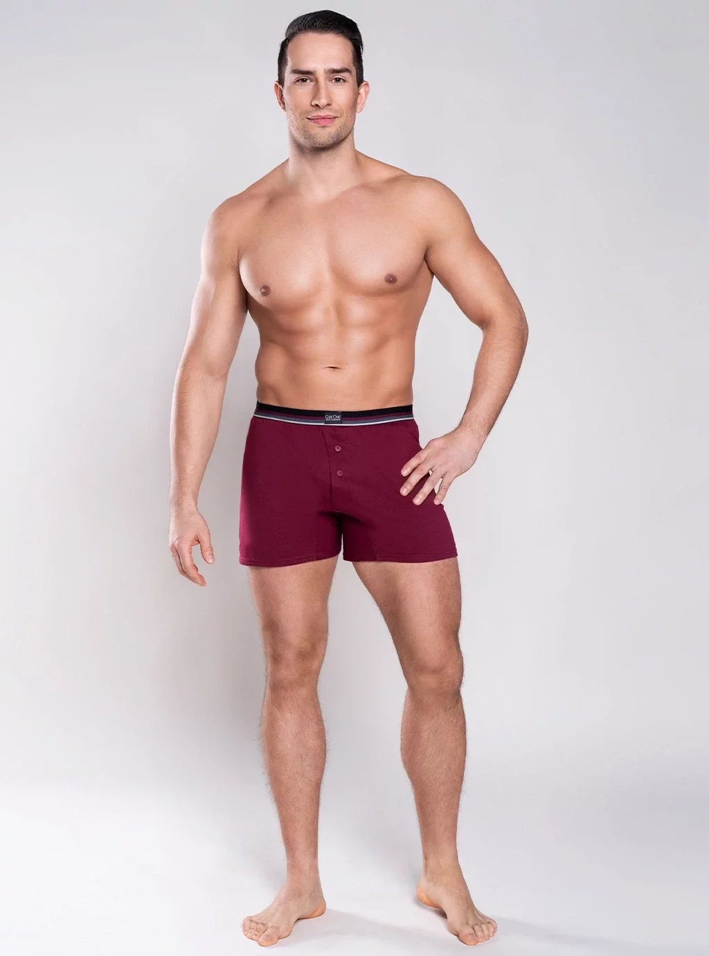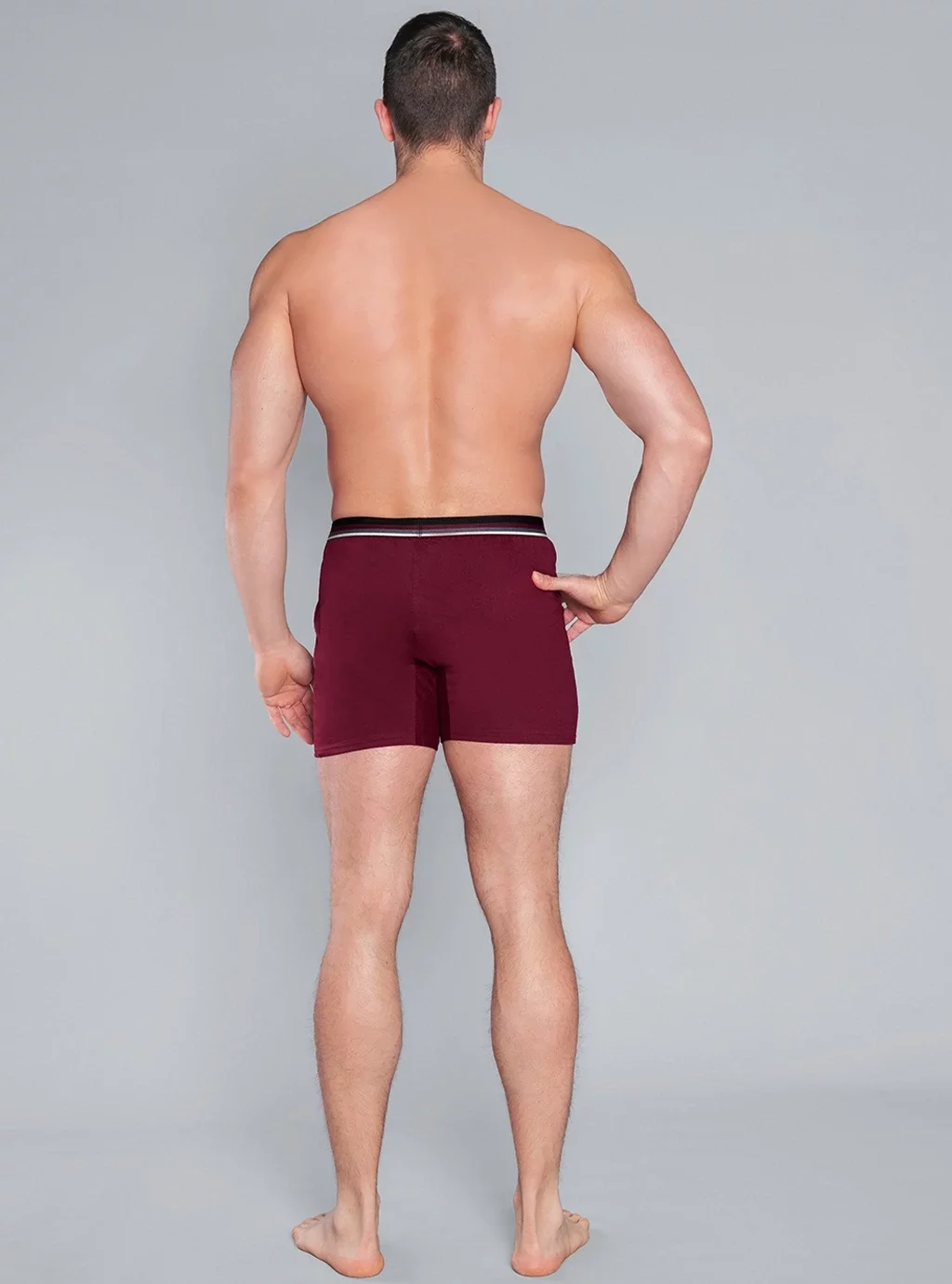 Die Herren-Boxershorts von Logan sind einzigartige Herrenunterwäsche, die Komfort und modischen Stil vereint. Perfekt für Männer, die Wert auf einen klassischen Look und hohen Tragekomfort legen. Wir präsentieren Ihnen Herren-Boxershorts in einem schönen Burgunderton, der universell und zeitlos ist. Die burgunderroten Logan-Boxershorts zeichnen sich durch ein schlichtes, minimalistisches Design aus, das durch dezente Details, wie einen elastischen Bund mit einem zarten, bunten Streifen, unterstrichen wird. Der Gummizug sorgt für eine perfekte Passform an der Figur und setzt gleichzeitig einen modernen Akzent bei den Boxershorts.