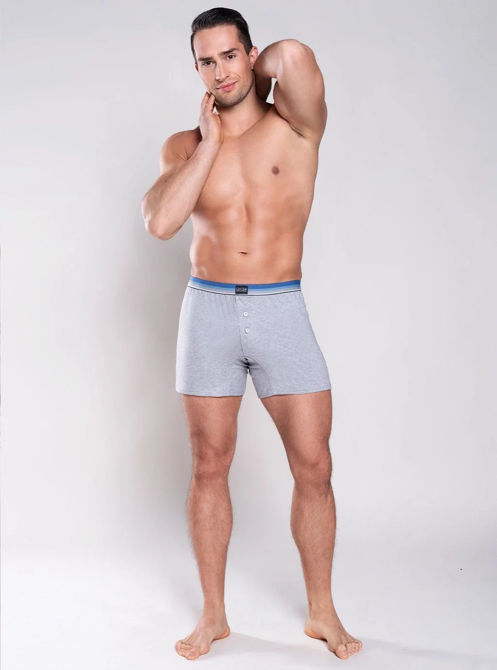 Achten Sie auf die klassische graue Farbe, die diesem Produkt ein modernes Aussehen verleiht. Der kontrastierende Gummizug unterstreicht ihren stilvollen Charakter. Der klassische Schnitt sorgt für Tragekomfort und betont gleichzeitig perfekt die männliche Figur. Dank der Verwendung von Baumwolle und Elasthan sind die Boxershorts äußerst weich und angenehm anzufassen. Der elastische Bund sorgt für einen festen Halt und ist gleichzeitig zart genug, um nicht auf den Bauch zu drücken. Der zum Nähen dieser bequemen Boxershorts verwendete Stoff ist leicht und flexibel, wodurch sich die Herren-Boxershorts perfekt an den Körper anpassen und volle Bewegungsfreiheit gewährleisten.