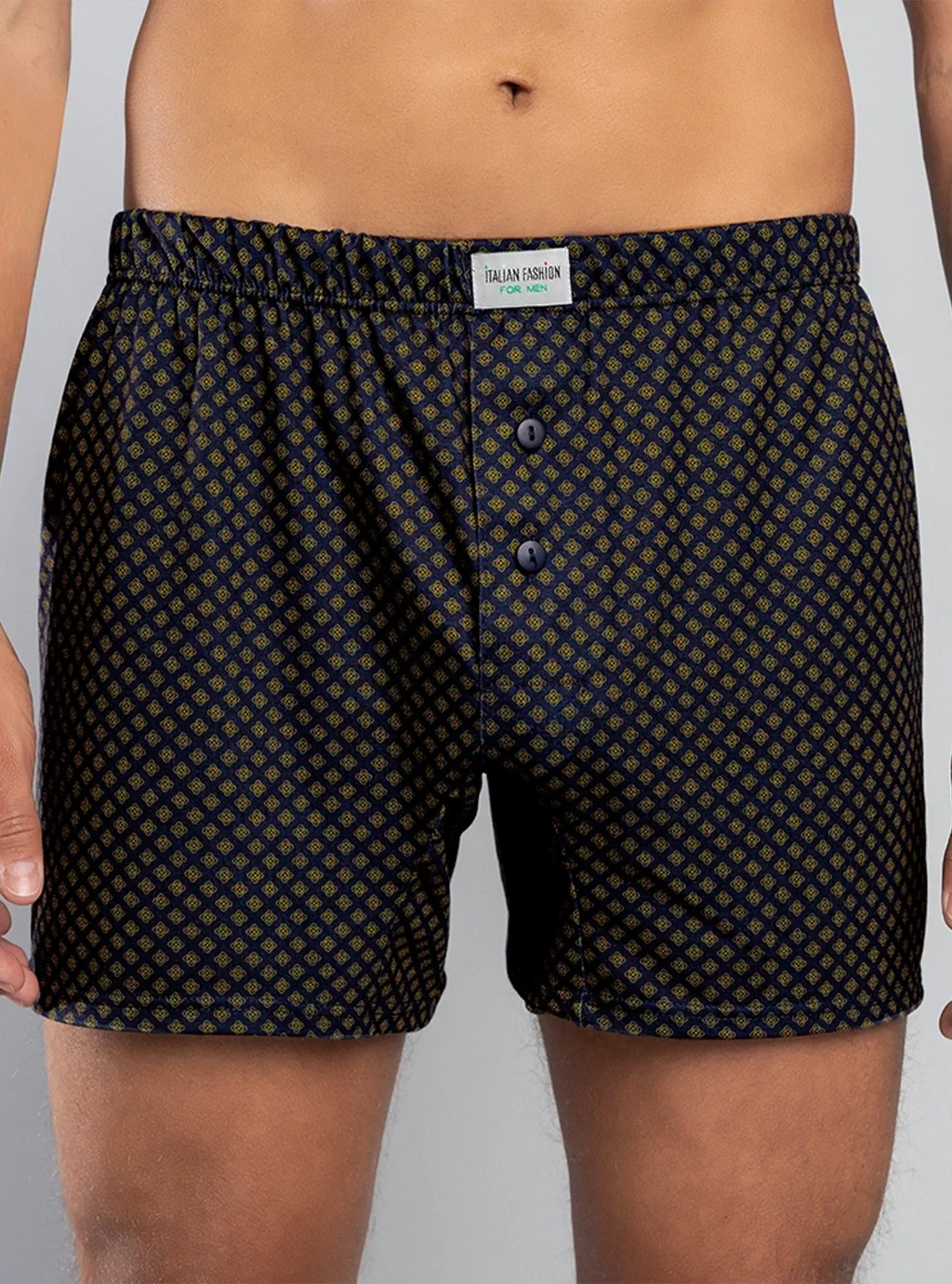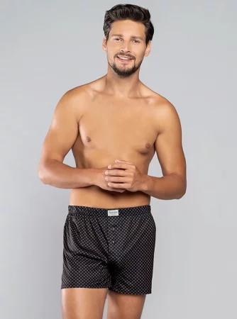 Die eleganten Herren-Boxershorts von Norman sind eine ausgezeichnete Wahl für jeden Mann, der Wert auf Komfort, Stil und hohe Verarbeitungsqualität legt. Sie sind aus Materialien höchster Qualität gefertigt und sorgen den ganzen Tag über für Komfort. Die vorgestellten Herren-Boxershorts sind elegant, in dunkler Farbe und mit einem zarten, regelmäßigen Muster mit kleinen Rauten versehen, was ihnen einen klassischen und zeitlosen Look verleiht. Der Schnitt ist locker, sodass Sie viel Bewegungsfreiheit haben, was sowohl tagsüber als auch nachts wichtig ist.