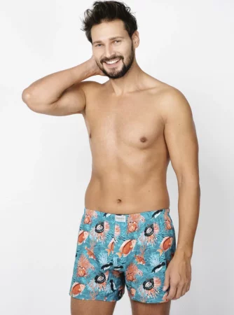 Eines der charakteristischsten Elemente dieser Boxershorts ist der Aufdruck, der die Unterwasserwelt darstellt. Dieses Motiv verleiht dieser bequemen Unterwäsche einen typischen Urlaubscharakter und bringt eine sommerliche, unbeschwerte Atmosphäre in Ihre Garderobe. Der Aufdruck ist nicht nur ästhetisch, sondern auch langlebig, was garantiert, dass die Boxershorts auch nach vielen Wäschen noch toll aussehen.