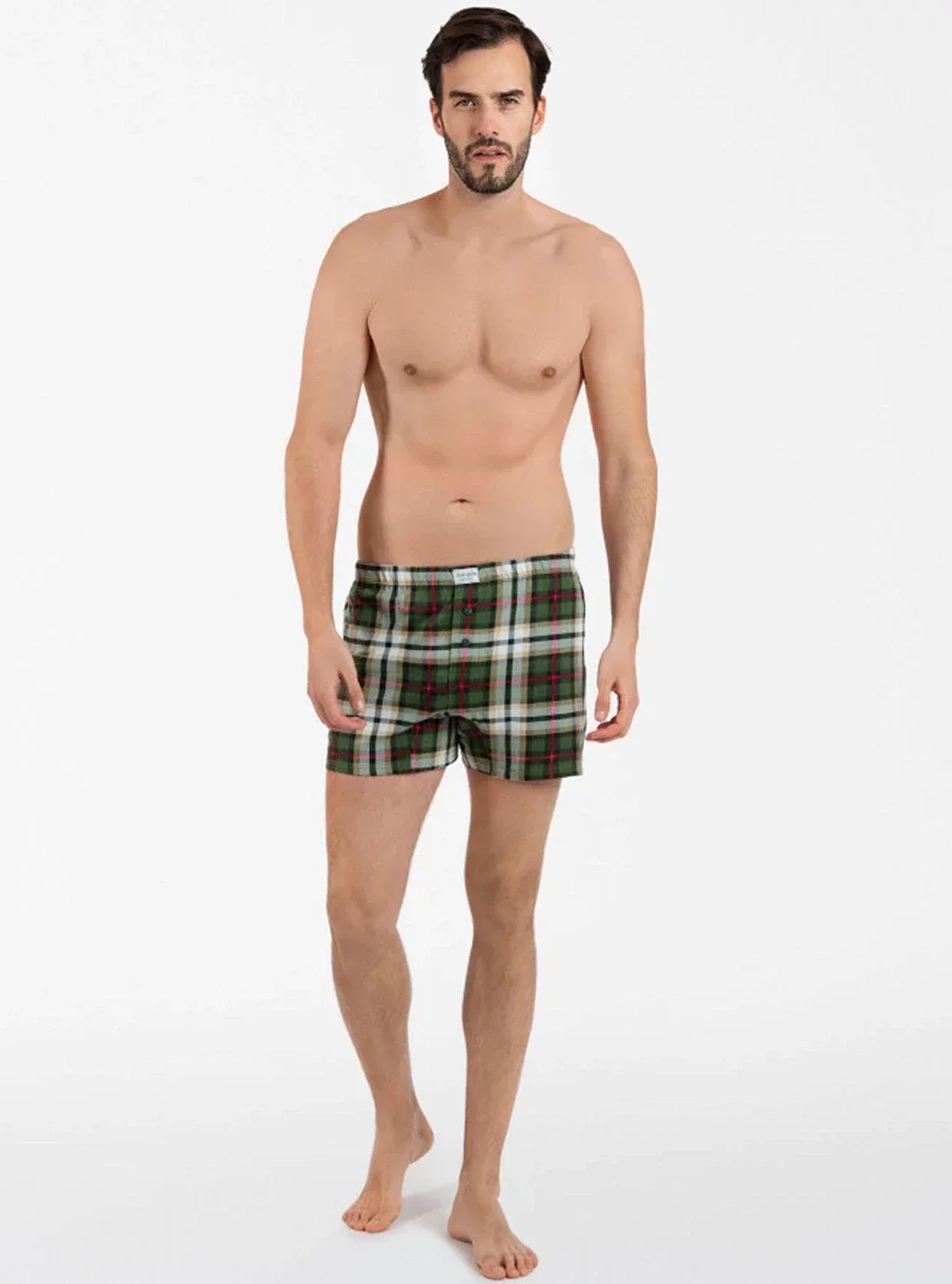 Bequeme und bequeme Herren-Boxershorts mit modischem grünen Karomuster bestehen aus hochwertiger, natürlicher Baumwolle, die für eine hervorragende Belüftung der Haut sorgt und so sowohl im Sommer als auch im Winter angenehm zu tragen ist. Die Baumwolle, aus der unsere bequemen Herren-Boxershorts bestehen, ist weich und sanft zur Haut, wodurch das Risiko von Reizungen und Allergien minimiert wird.