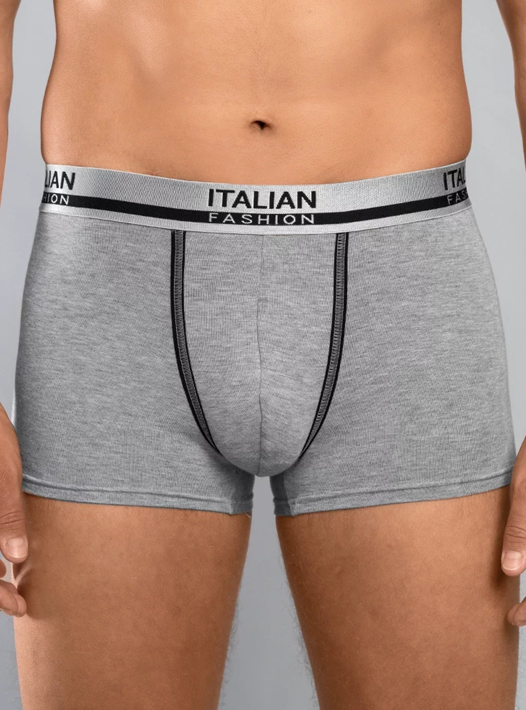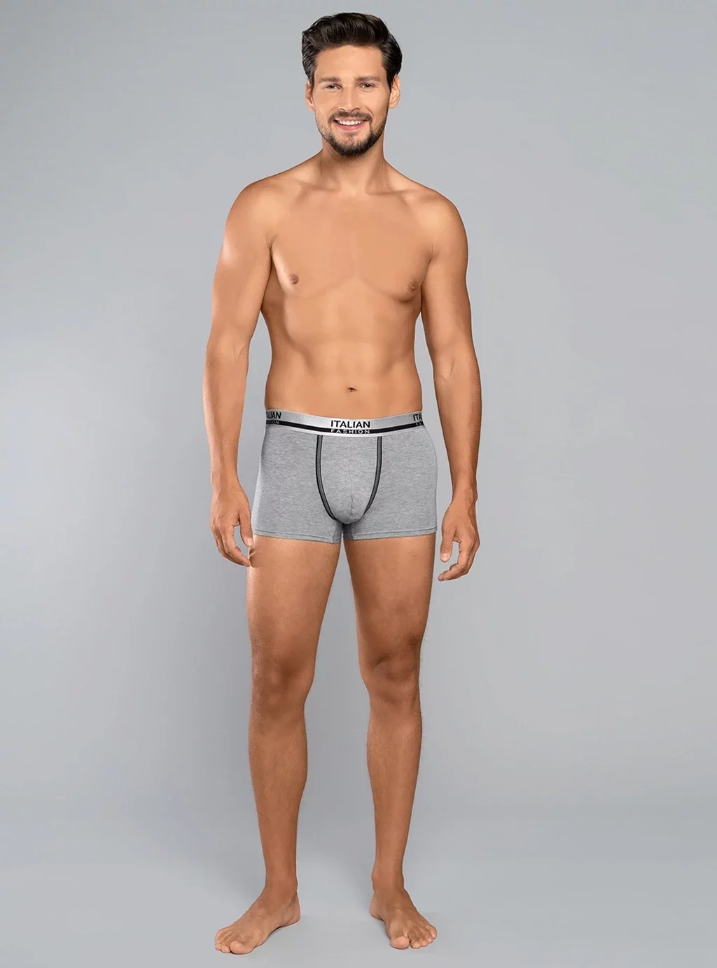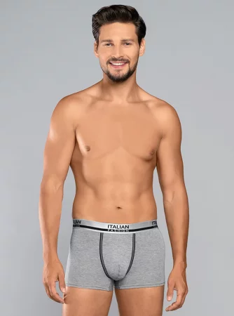 Achten Sie auf die klassische graue Farbe, die diesem Produkt ein modernes Aussehen verleiht. Kontrastierende schwarze Nähte und ein modischer Riemen mit der Aufschrift „Italian Fashion“ unterstreichen ihren stilvollen Charakter. Der klassische Schnitt sorgt für Tragekomfort und betont gleichzeitig perfekt die männliche Figur. Dank der Verwendung von Viskose und Elasthan sind die Boxershorts äußerst weich und angenehm im Griff. Der elastische Bund sorgt für einen festen Halt und ist gleichzeitig zart genug, um nicht auf den Bauch zu drücken. Der zum Nähen dieser bequemen Boxershorts verwendete Stoff ist leicht und flexibel, wodurch sich die Herren-Boxershorts perfekt an den Körper anpassen und volle Bewegungsfreiheit gewährleisten.