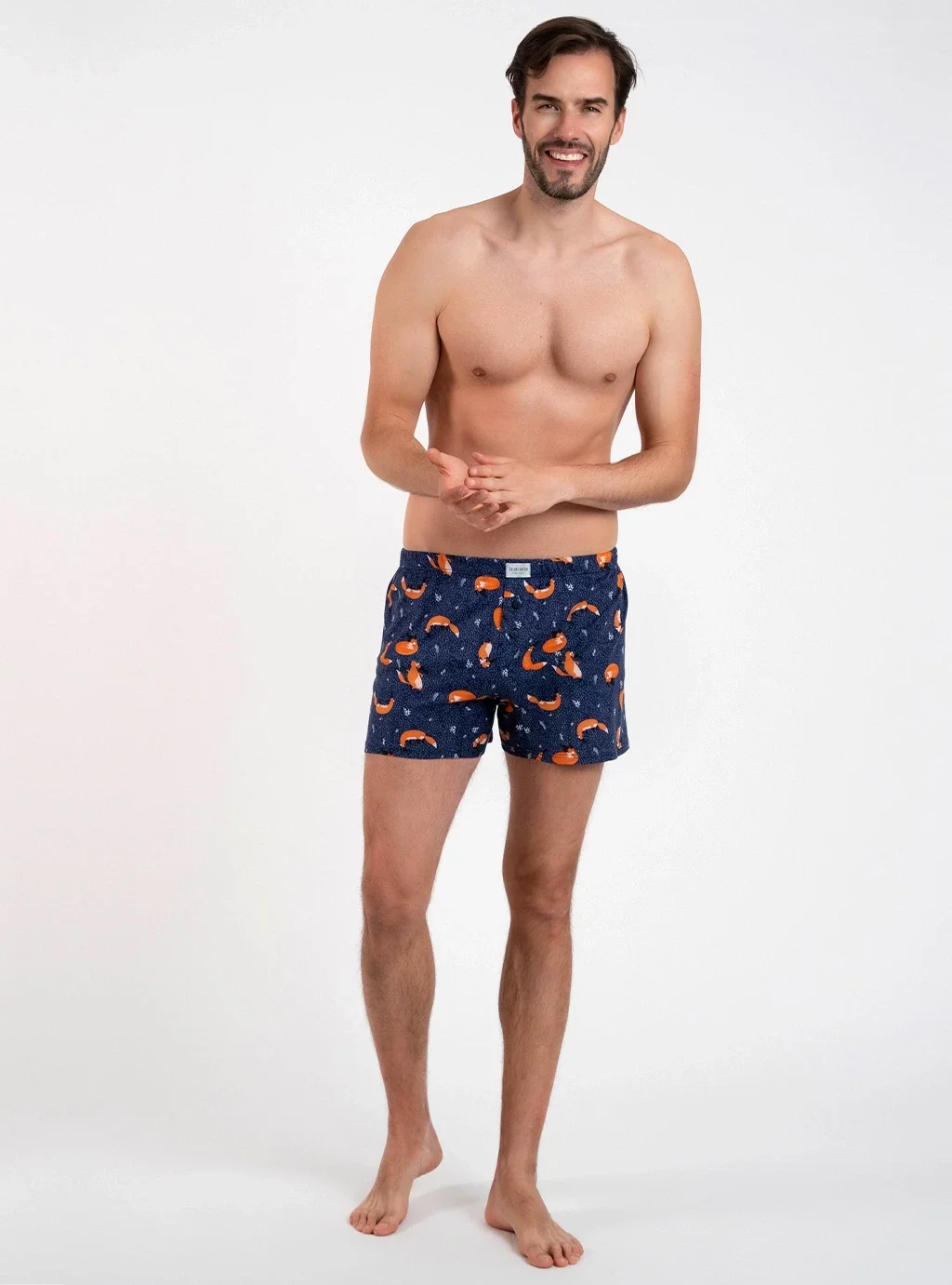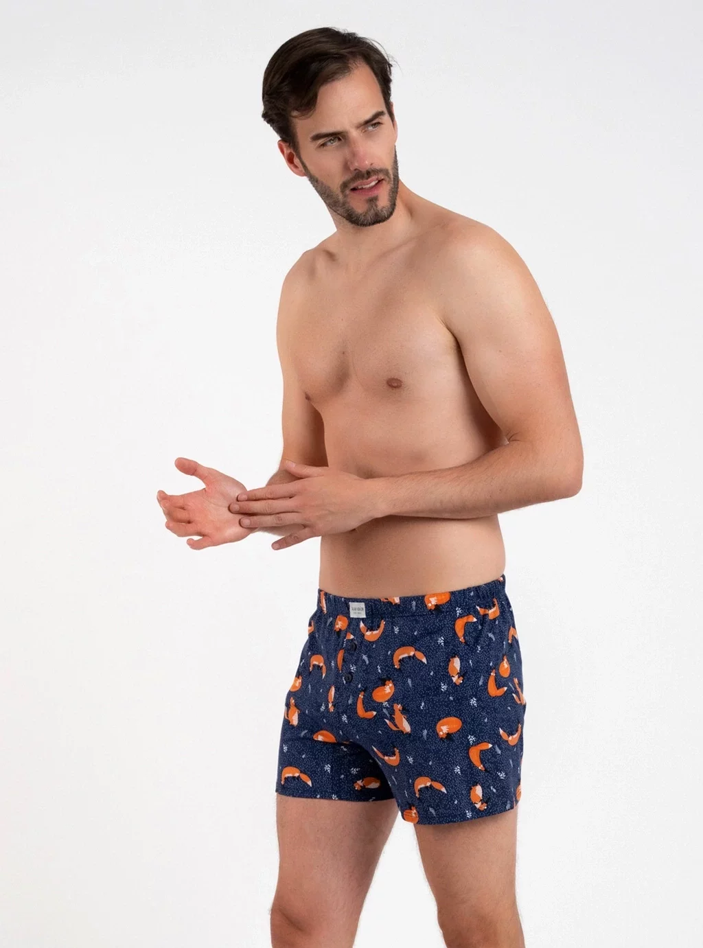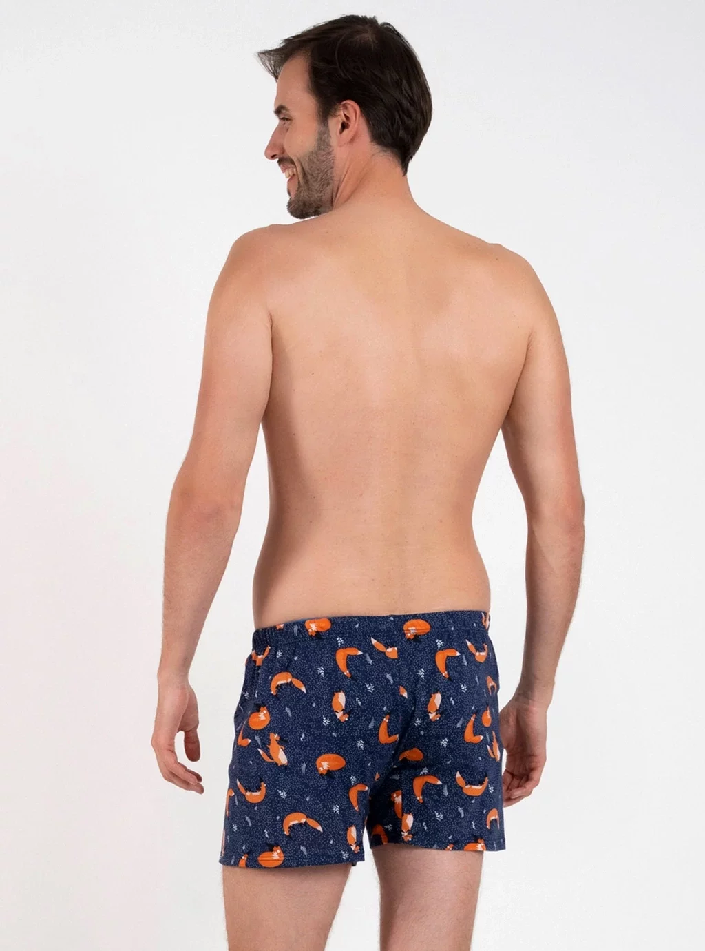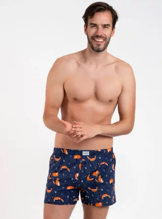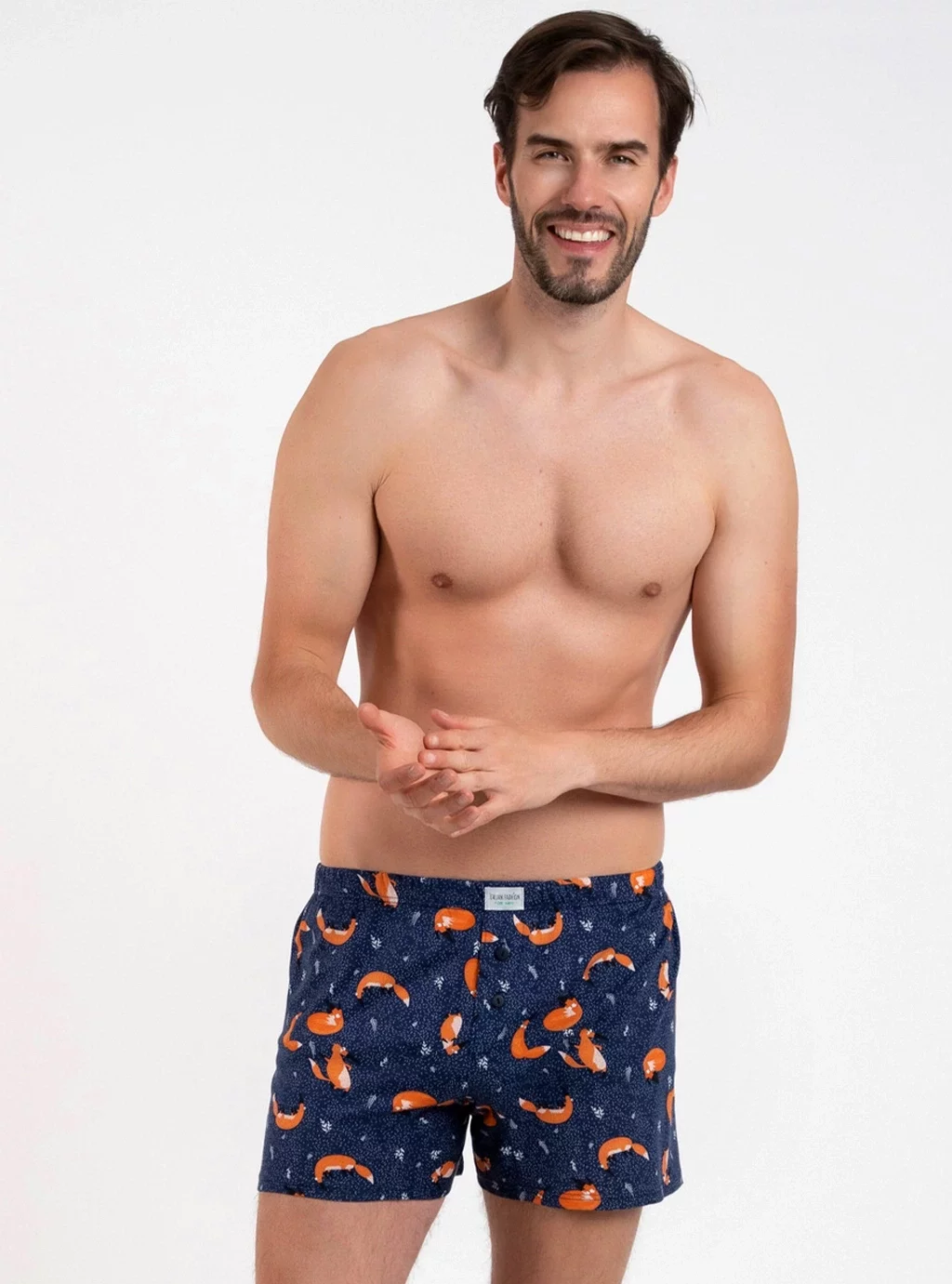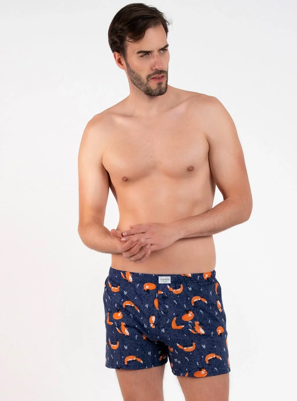 Die Herren-Boxershorts von Witalis sind ein einzigartiges Produkt, das Komfort und ein cooles Outfit in einem vereint. Boxershorts für Herren bestehen aus hochwertiger Baumwolle und bieten daher eine hervorragende Atmungsaktivität und Weichheit, wodurch sie sich perfekt für den täglichen Gebrauch eignen. Ihre marineblaue Farbe, verziert mit einem bezaubernden Muster aus orangefarbenen Füchsen und kleinen weißen Details, verleiht unseren bequemen Boxershorts einen modernen und originellen Look.