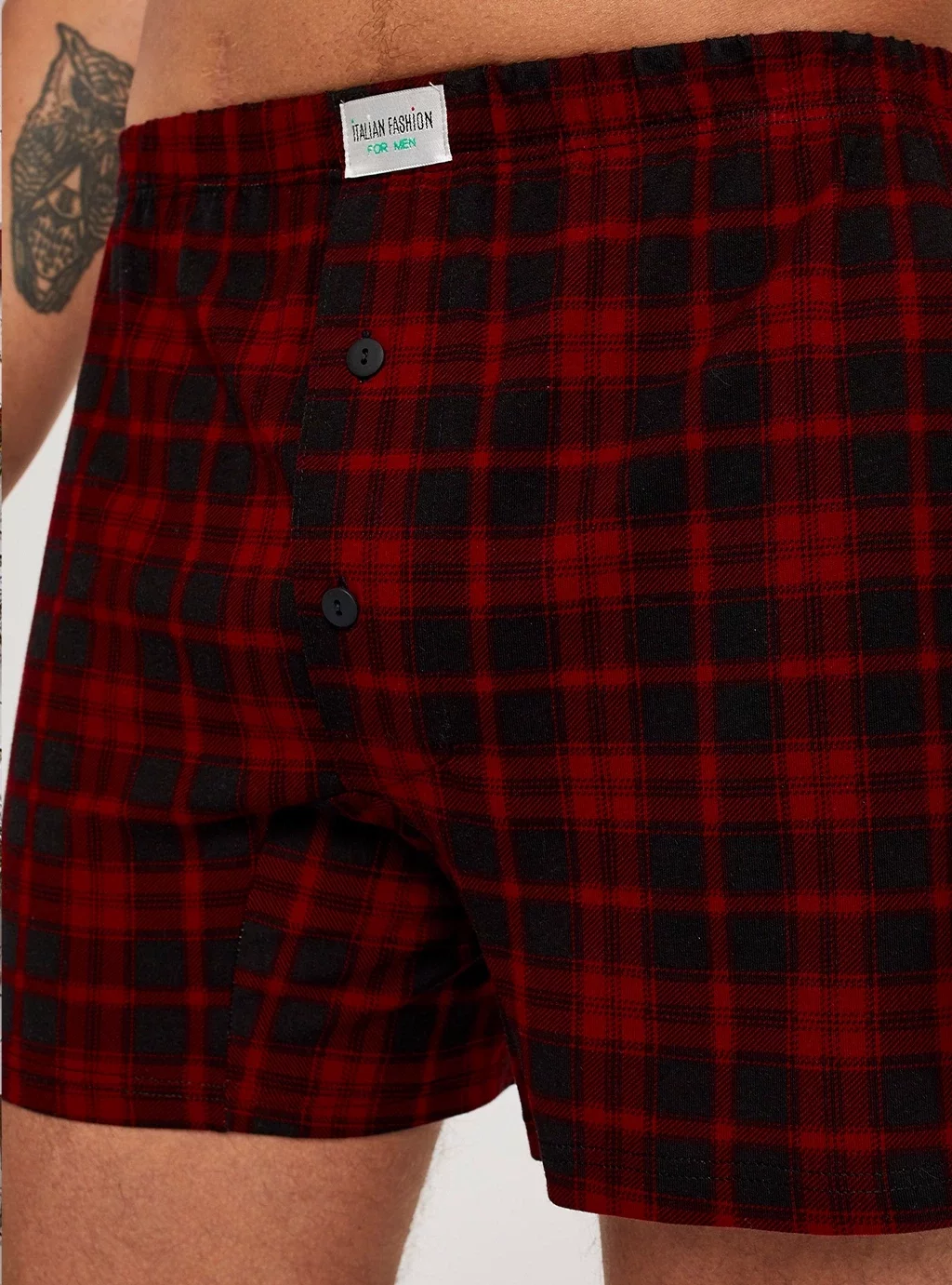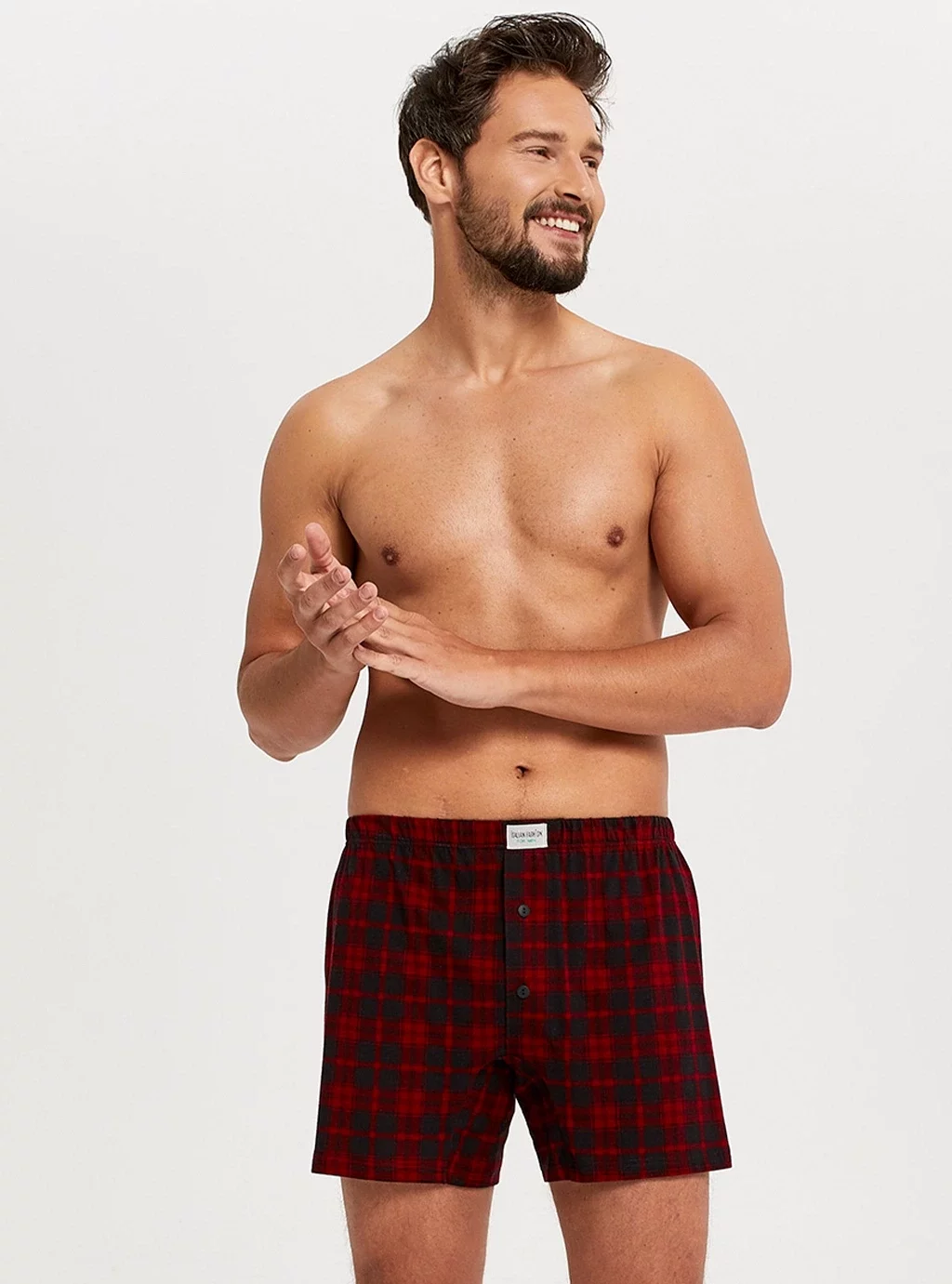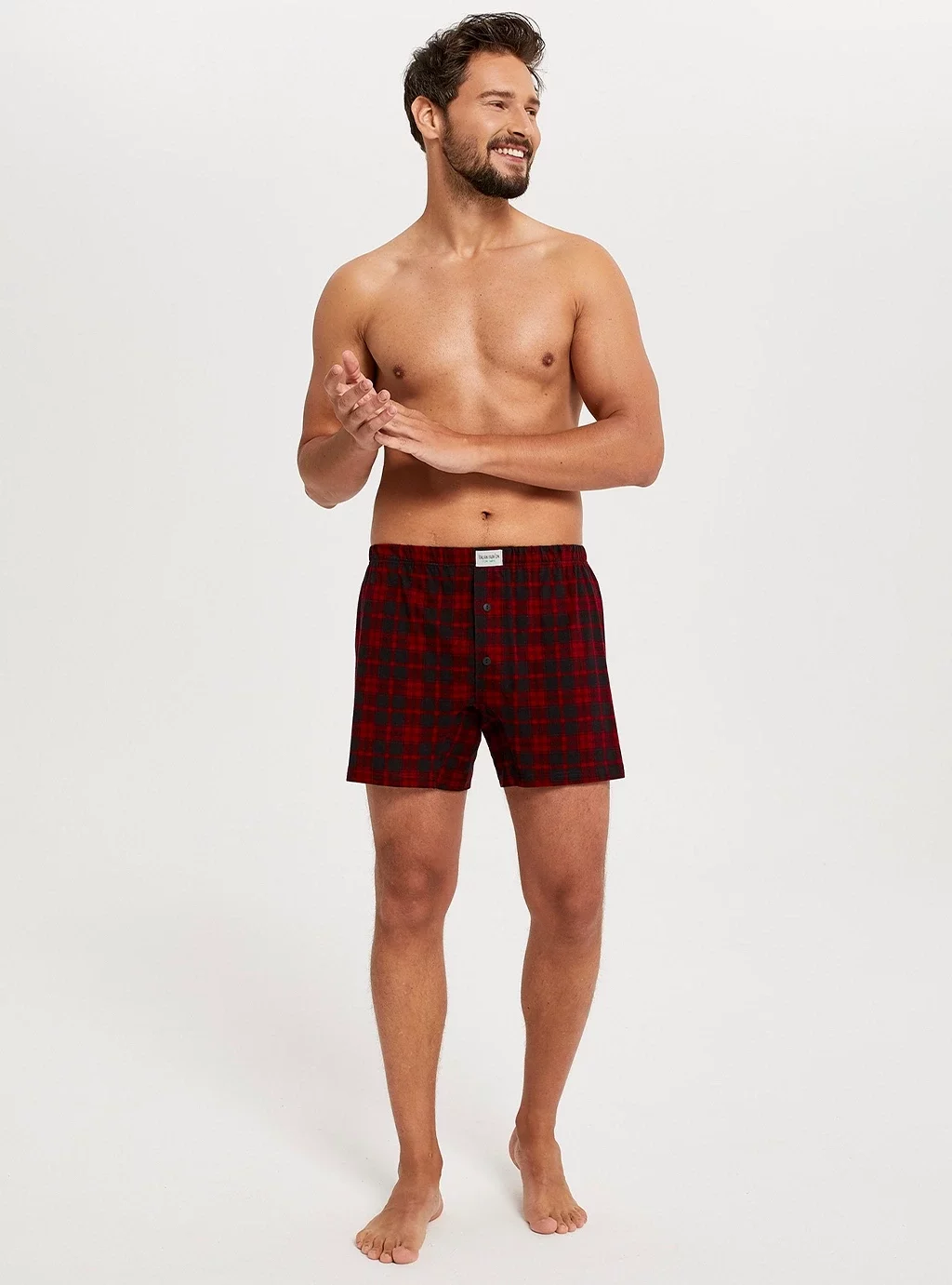 Entscheiden Sie sich für Herren-Boxershorts aus Baumwolle mit Karomuster und genießen Sie das ganze Jahr über außergewöhnlichen Komfort! Dank ihrer Vorteile werden sie Ihr zuverlässiger Begleiter sowohl bei alltäglichen Aktivitäten als auch in der Ruhe sein. Zu diesem Modell empfehlen wir eine bequeme Pyjamahose mit dem gleichen Muster.