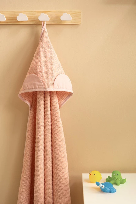 Eine Badedecke mit Kapuze ist ein Produkt, das sich perfekt eignet, um das Baby nach dem Baden fest einzuwickeln.