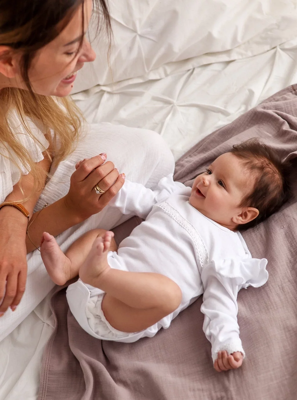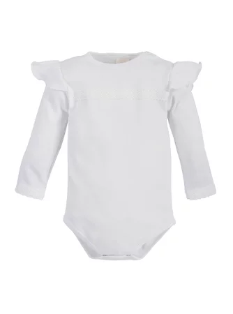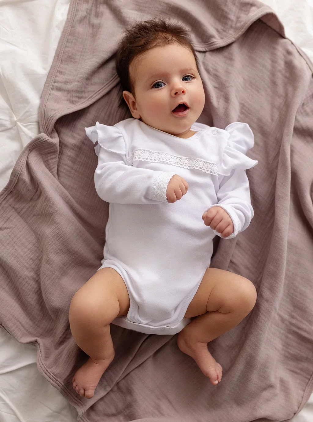 Eleganter Baby-Shirt-Body aus Musselin mit langen Ärmeln. Vorteile: