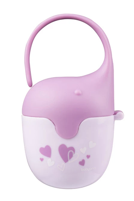 Der Schnullerbehälter in Elefantenform ist ein praktisches Produkt für alle Reisen. Es schützt den Schnuller des Babys vor Schmutz, ist bequem zu verwenden und einfach anzubringen. Der flexible Kofferraum ermöglicht die Befestigung des Behälters an einem Kinderwagen, Autositz oder einer Kinderwagentasche. Hergestellt aus sicheren Materialien , enthält kein Bisphenol A.