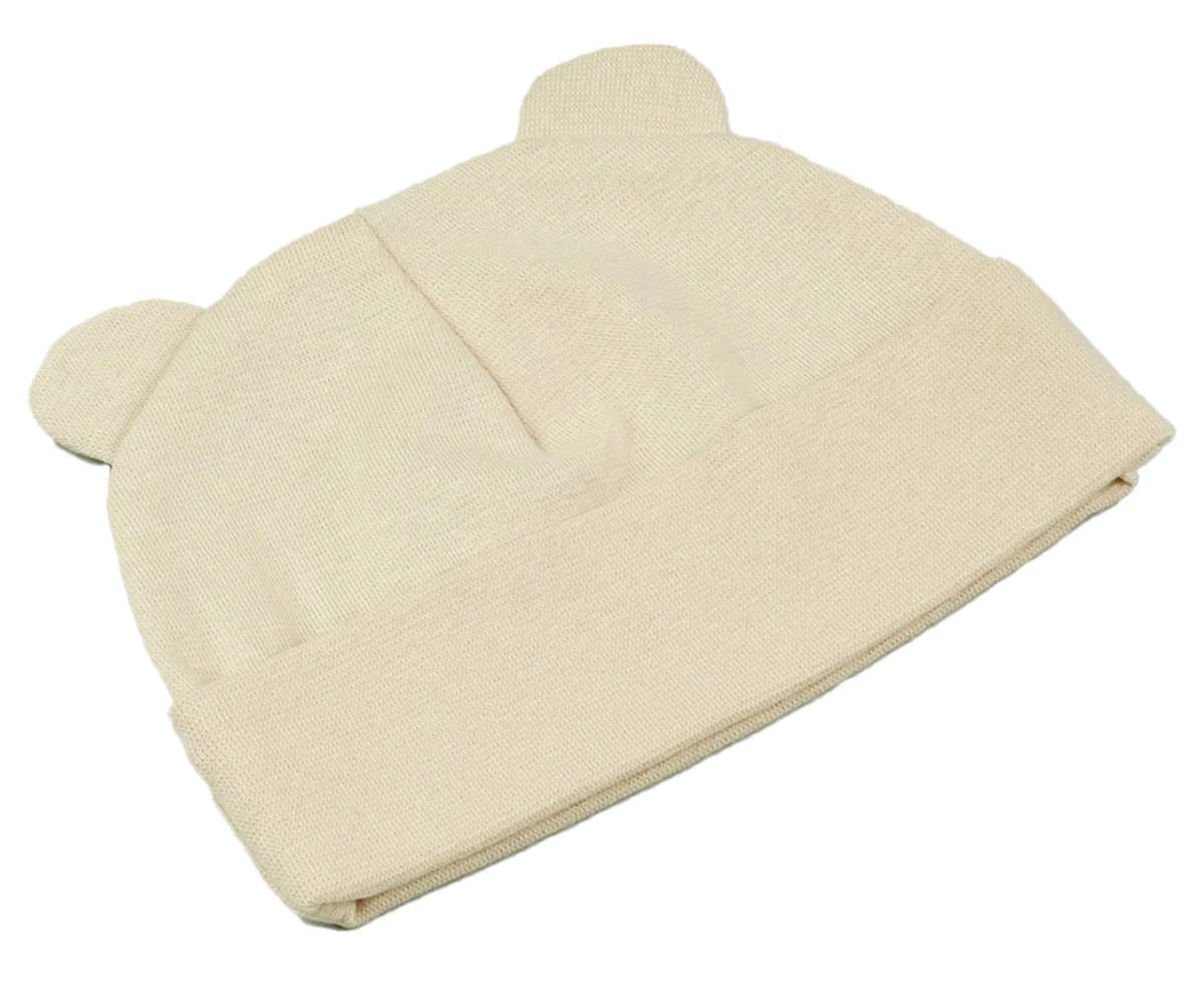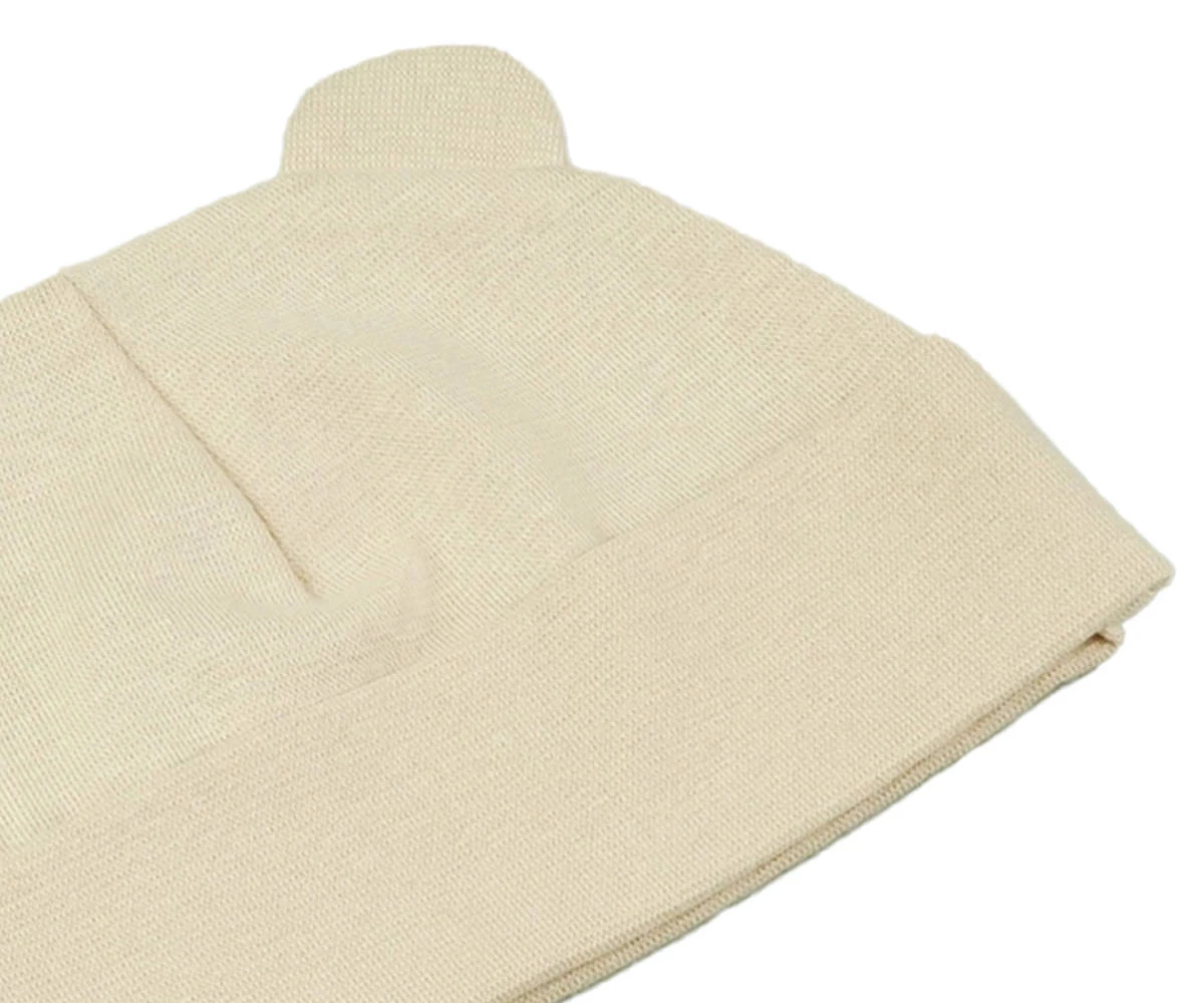 Das perfekte erste Bekleidungsset für ein Kleinkind aus Bio-Baumwolle kann nicht komplett sein ohne Accessoires wie Babymützen, die die Haut atmen lassen und sicher für Babys empfindliche Haut sind. Wir präsentieren Ihnen ein bezauberndes, perfektes Set, in dem eine Babymütze mit Ohren enthalten ist, die aus angenehmer Bio-Baumwolle in Beige gefertigt ist. Baumwollkleidung, die von der Marke Mrofi kreiert wurde, mit dem Ziel, Ihren kleinen Schätzen maximalen Komfort und Schutz zu bieten. Die weiche Babymütze passt sich perfekt an den Kopf des Kindes an und bedeckt die Ohren des Babys sicher. Die Baumwoll-Babymütze schmiegt sich perfekt um den Kopf und das leicht dehnbare Material passt sich der zarten Haut und der Kopfform an und pflegt so den Kopf Ihres Babys.