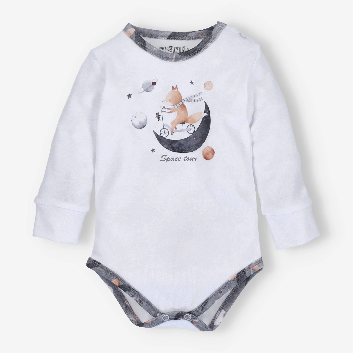 Body niemowlęce Space tour z bawełny organicznej - białe