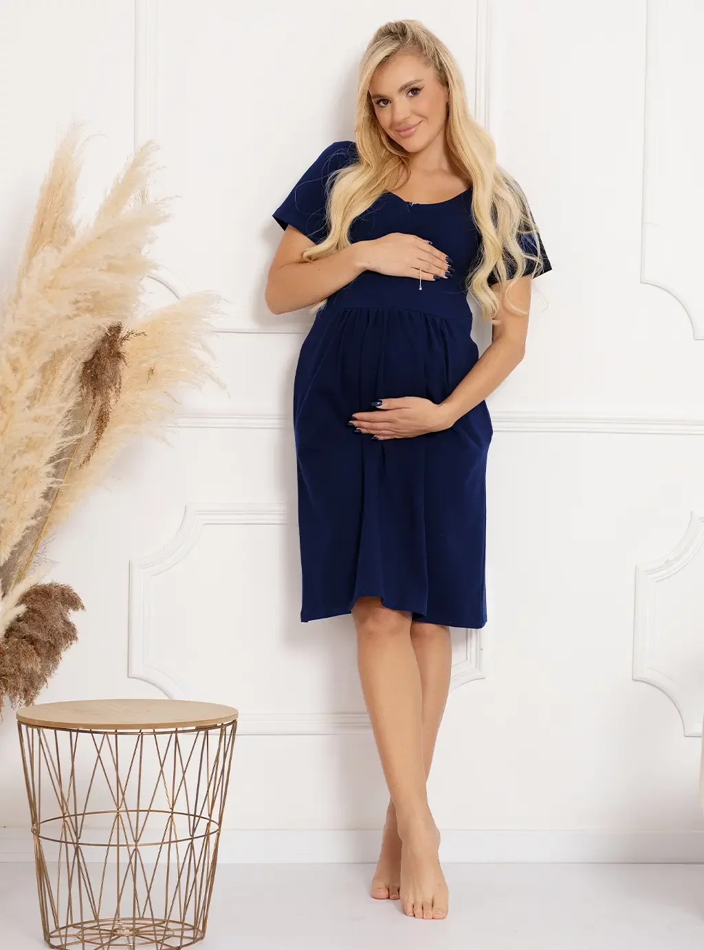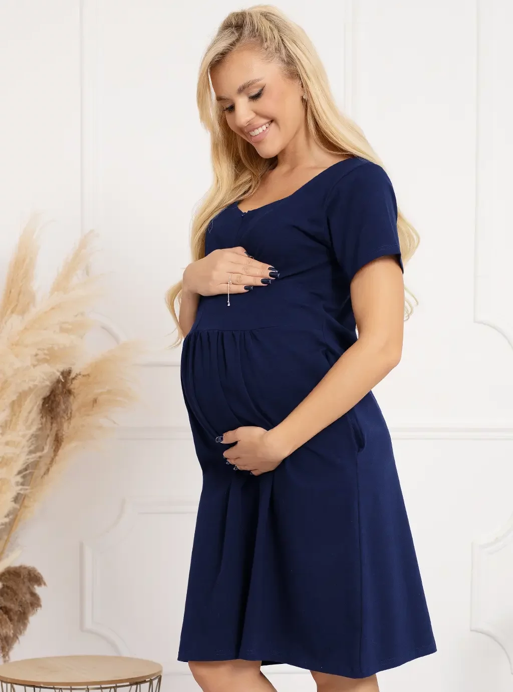 Kurzärmliges Umstandsnachthemd Laura – Marineblau