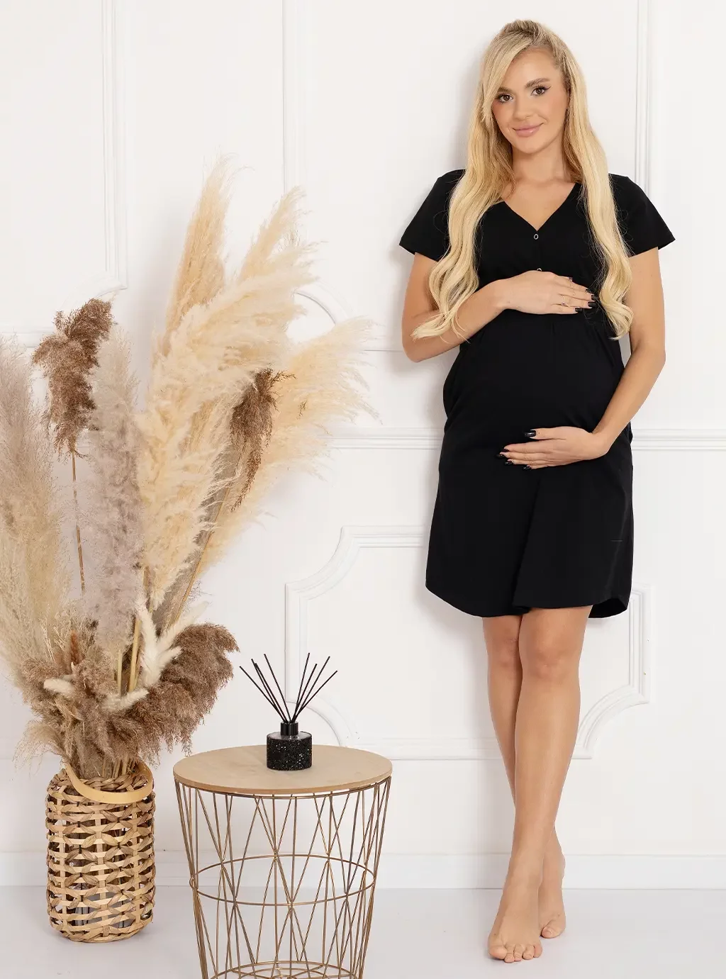 Das schwarze Umstands- und Stillshirt Ismena ist für Fans dieser Farbe sicherlich auch in der Schwangerschaft ein echter Leckerbissen. Das perfekte Hemd, das die nächtliche Fütterung Ihres Neugeborenen erleichtert, aber auch für Komfort bei dieser Aktivität sorgt. Das schwarze Baumwollshirt aus der Ismena-Kollektion wird mit nickelfreien Druckknöpfen geschlossen, die das Füttern Ihres Babys bei Bedarf erleichtern. Perfekte Nachthemden während der Stillzeit und Schwangerschaft sind ein Angebot, das sich zukünftige Mütter nicht entgehen lassen dürfen.