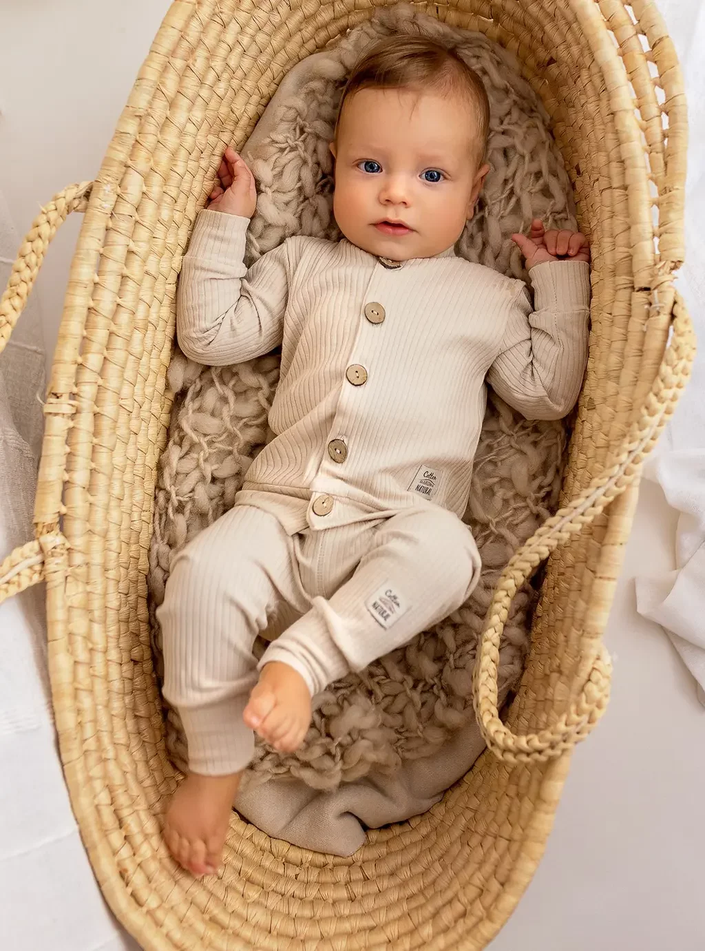 Ein beiges Baby-Kapuzenpullover aus der Natural Harmony-Kollektion aus geripptem Material ist in jeder Hinsicht  ein Must-Have .  Perfekt für Jungen in modischen Styles, kombiniert mit Schlafanzügen oder Hosen. Aber auch als Accessoire für Mädchen – ein Baby-Sweatshirt zum Rock oder Kleid. Modisches Rippmaterial begeistert nicht nur uns Mütter, sondern ist auch für unsere Kinder eine tolle Wahl.