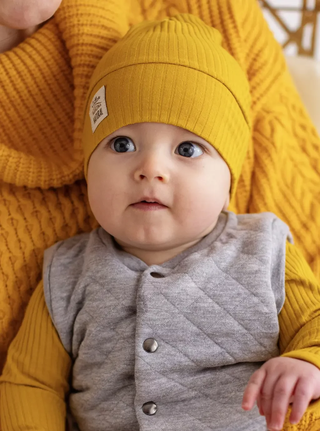 Die bequeme Mütze besteht aus gerippter Baumwolle, die flexibel ist und sich weich anfühlt. Die dehnbare Mütze aus angenehmer Baumwolle passt sich der Kopfform des Kindes an und lässt die Haut atmen, während sie gleichzeitig die Ohren gut bedeckt und dem Baby höchsten Tragekomfort bietet. Eine zarte Babymütze aus 100 % zertifizierter Baumwolle ist ein wesentlicher Bestandteil der Babyausstattung für Neugeborene. Die Honighaube drückt nicht auf den Kopf des Babys, sodass Ihr Kleines keine Beschwerden verspürt.