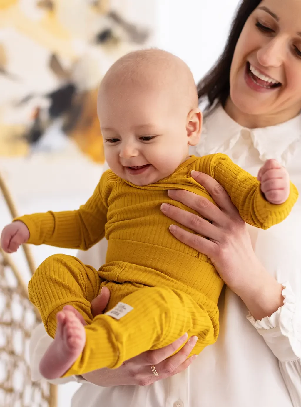 Bequeme Babyhosen für Jungen oder Mädchen, die Ihrem Baby Wärme, Komfort und einen stilvollen Look bieten, während es die Welt entdeckt. Achten Sie auf diese gerippte Baumwollhose für Babys in der Farbe Honig – gut für jedes Wetter und jede Kinderstimmung. Der klassische Schnitt mit nicht einschnürendem Bund sorgt dafür, dass diese bequemen Babyleggings an der richtigen Stelle bleiben. Mit der Wahl dieser perfekten Babyhose schonen Sie die empfindliche, zarte Haut Ihres Kindes, auch wenn es zu Allergien neigt. Entscheiden Sie sich für hochwertige, zertifizierte 100 % Baumwolle zu einem tollen Preis.