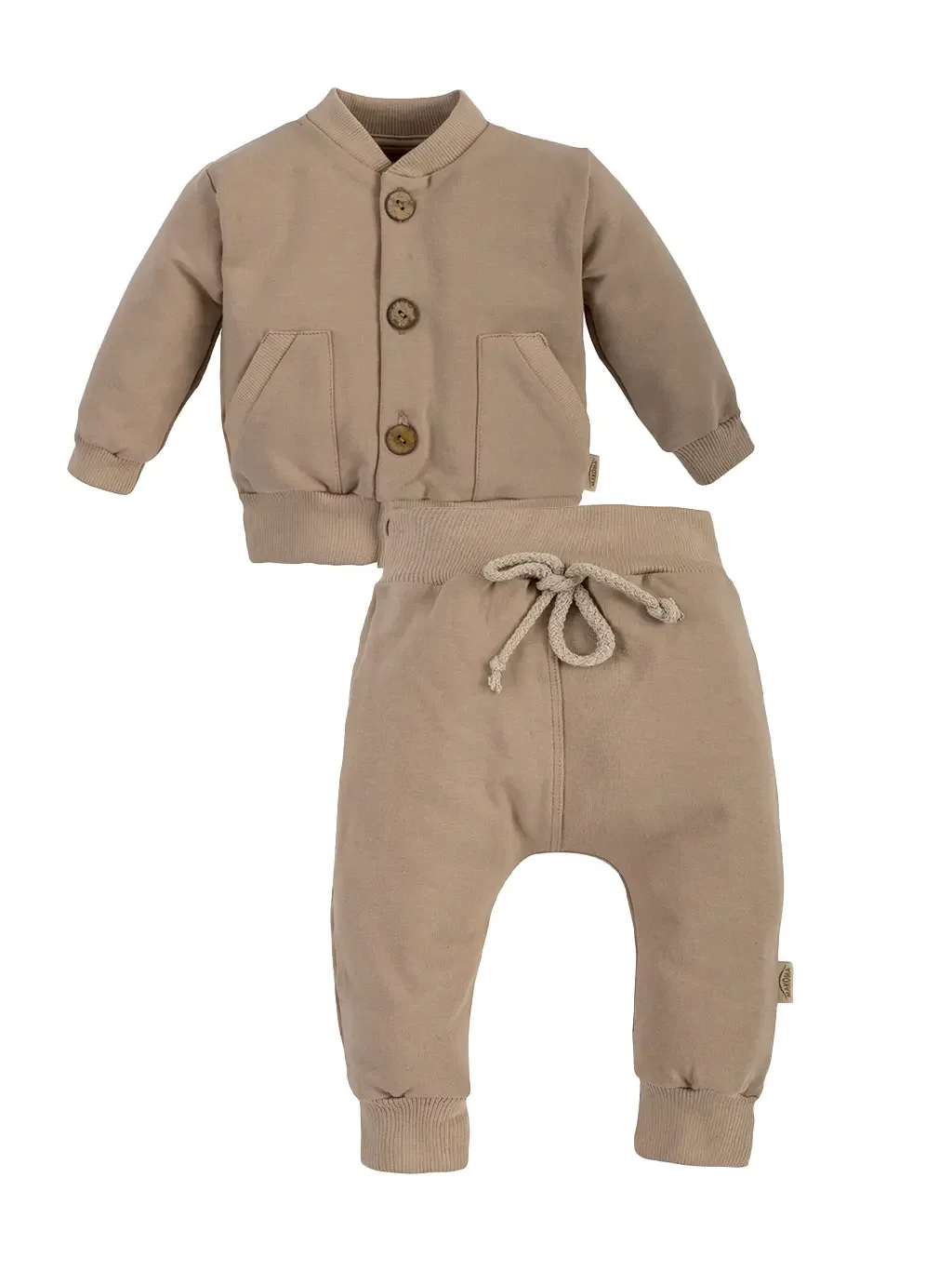 Fertige Sets für Jungen in der Farbe Latte sind ein schönes Set: Baby-Jogginghosen mit nicht einengendem Bund und ein Bomber-Sweatshirt mit Holzknöpfen. Das Baby-Sweatshirt hat einen eingenähten auffälligen Stehkragen und 2 bezaubernde Taschen. Der Joy-Trainingsanzug ist das perfekte Kleidungsstück für jeden Jungen. Kleidung aus Baumwolle pflegt die empfindliche Haut Ihres Babys.