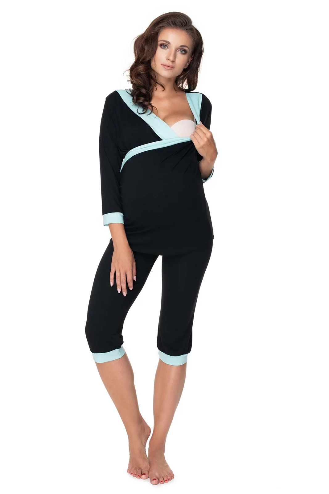 Umstandspyjama mit Stillfunktion und blauem Besatz