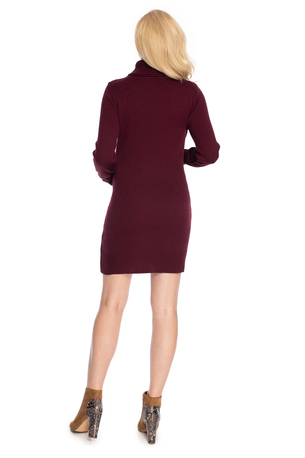 Langer Rollkragenpullover/Zopfkleid für Damen – Burgunderrot