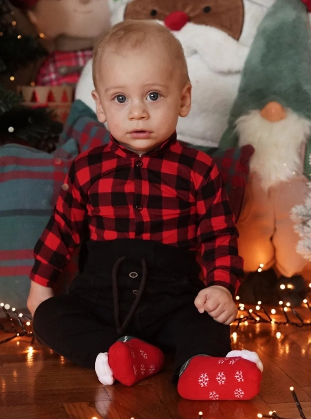 Ein rot-schwarzer Hemd-Body mit Kragen, Knöpfen an den Ärmeln und durchgehend nickelfreien Druckknöpfen. Der Roger-Body besteht aus 100 % Baumwolle, fühlt sich angenehm an, ist weich und sicher für das Baby. Antiallergische Druckknöpfe in der Mitte und im Schritt erleichtern das Wechseln der Windel bei Bedarf. Der bequeme Body ist sorgfältig und mit viel Liebe zum Detail genäht und kann das Hemd, das Ihr Vater trägt, erfolgreich imitieren. Ein bezauberndes kariertes Hemd wird zu vielen festlichen Anlässen nützlich sein, und wenn Sie verschiedene Accessoires wählen, können Sie viele elegante Stylings kreieren.