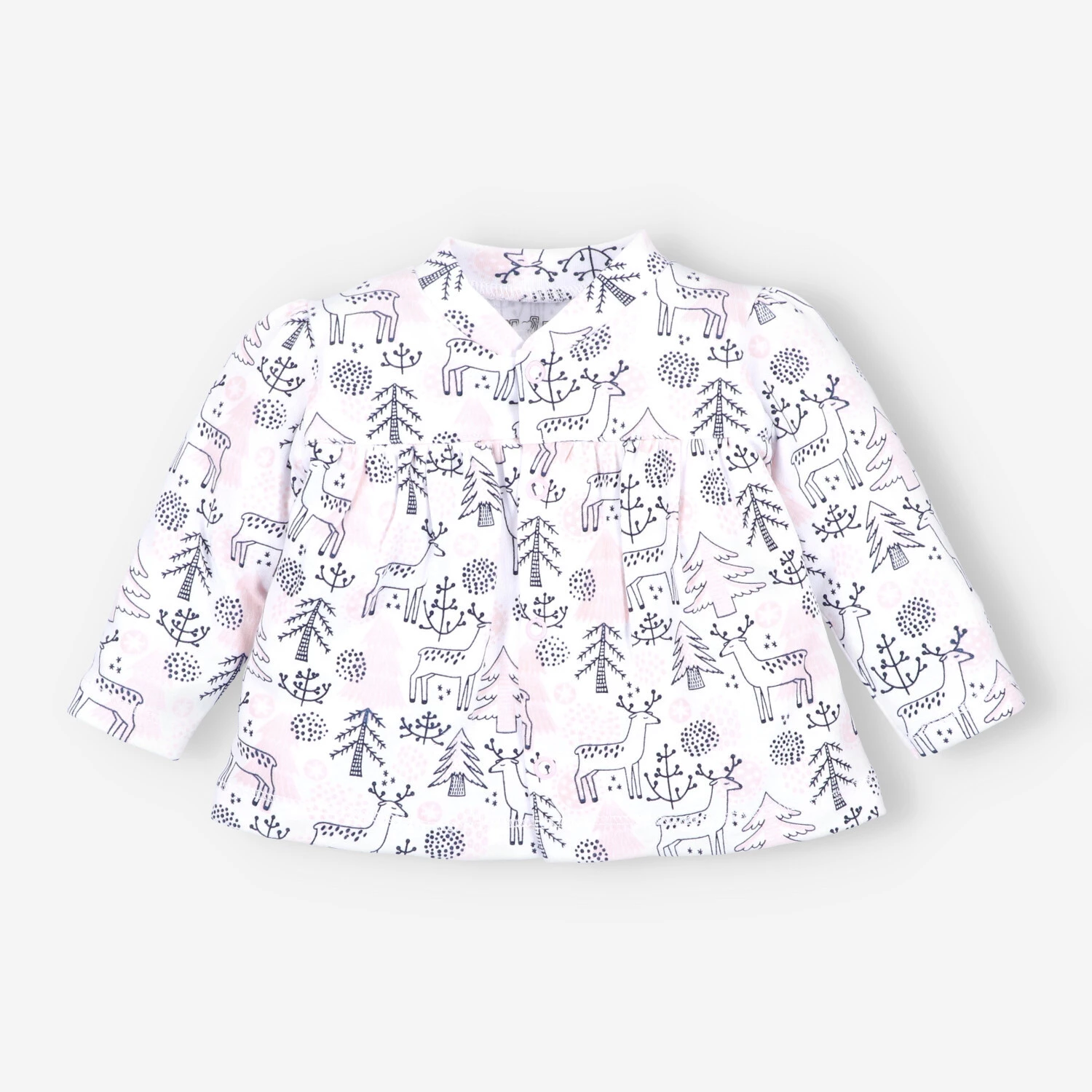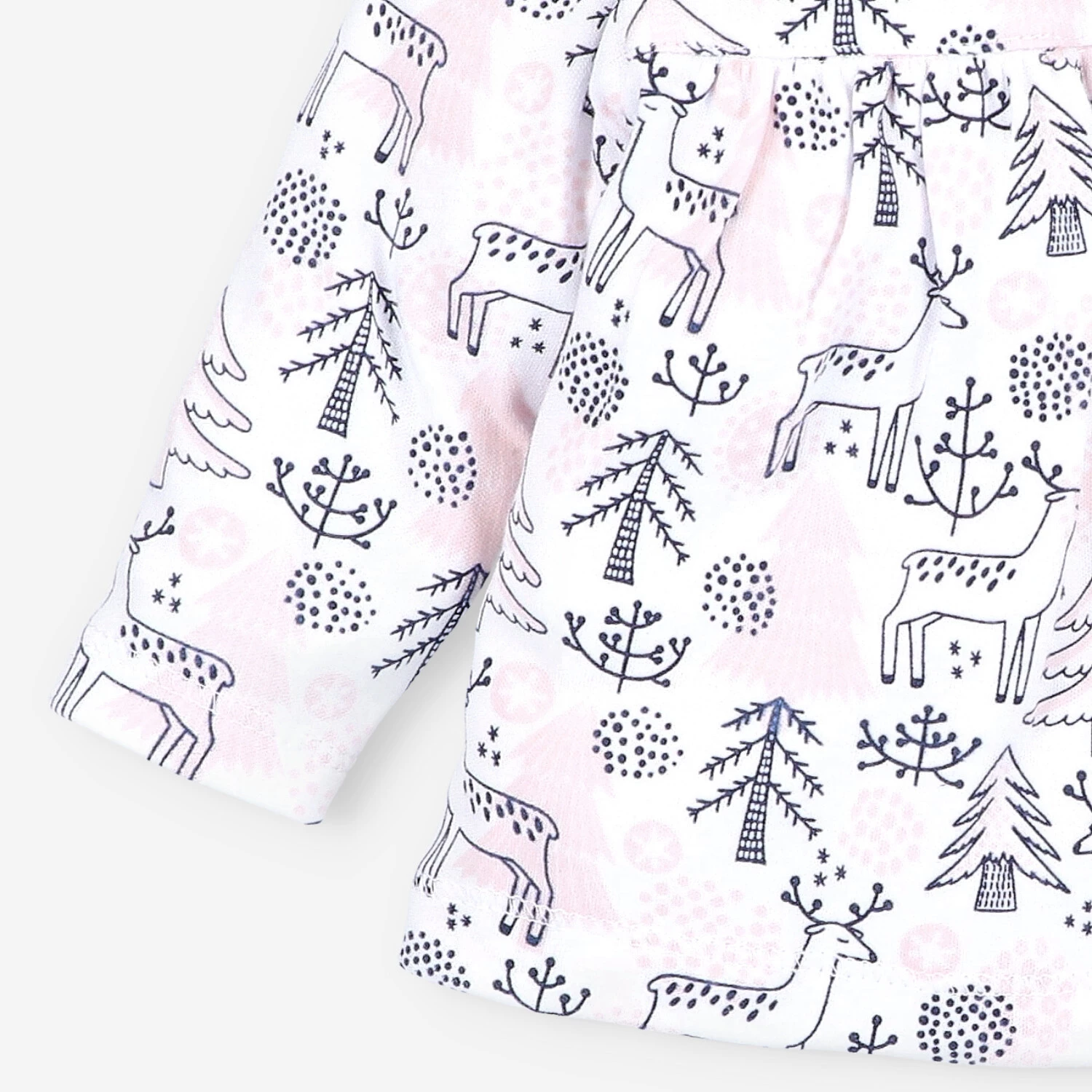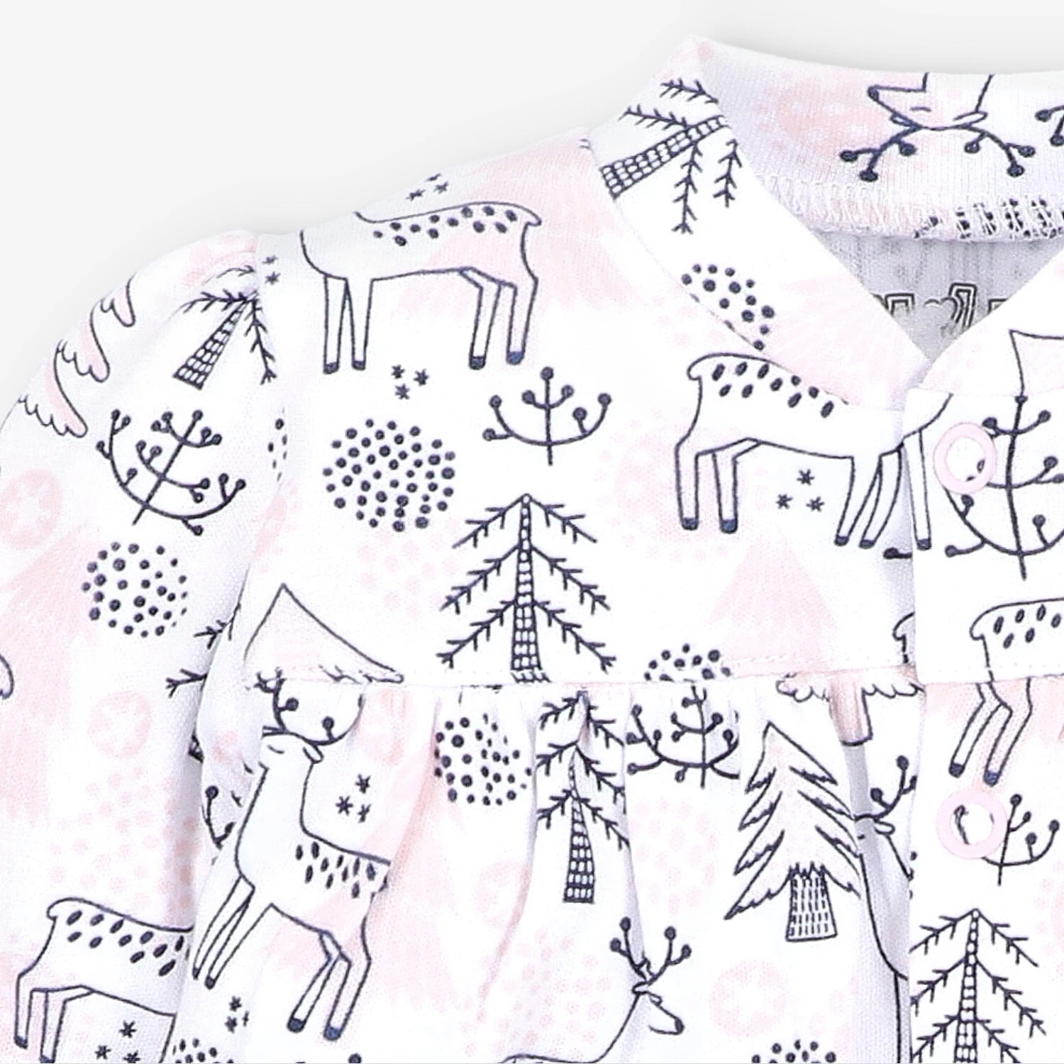 Der weiße Baby-Body ist auch in einer Umschlagversion mit Rüschen erhältlich. Sie können auch bequeme rosa Pyjamas wählen, die dieser Kollektion gewidmet sind.