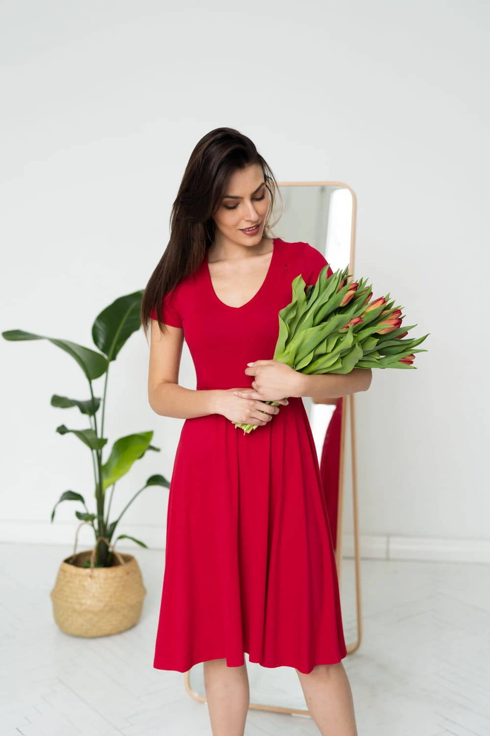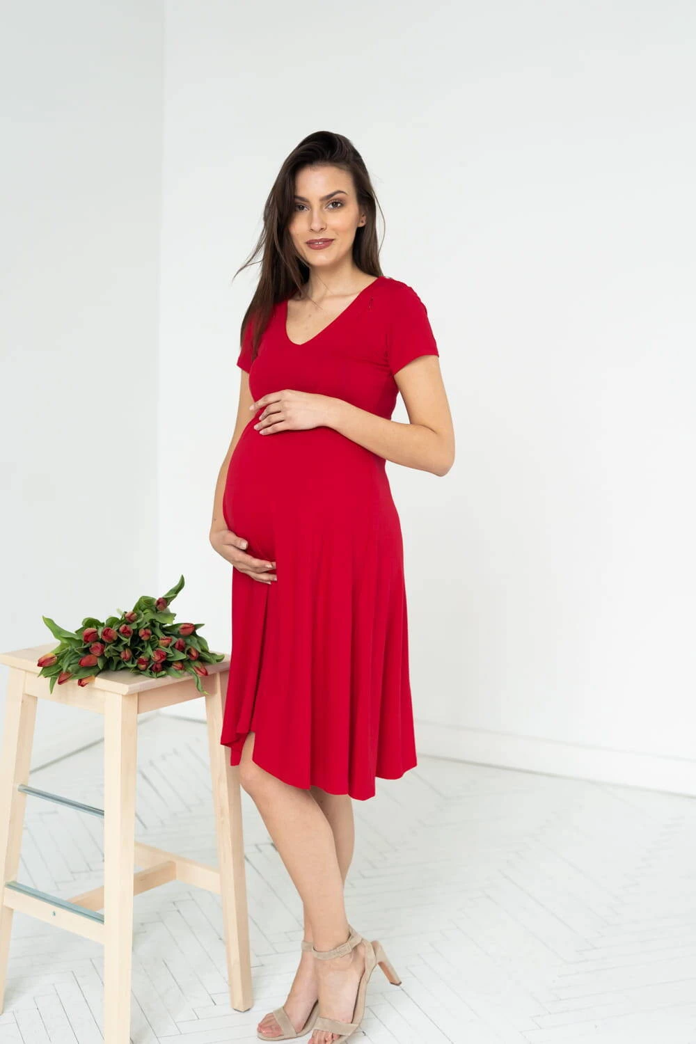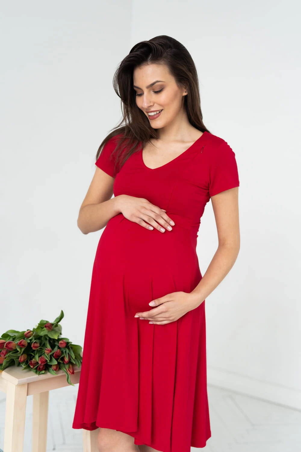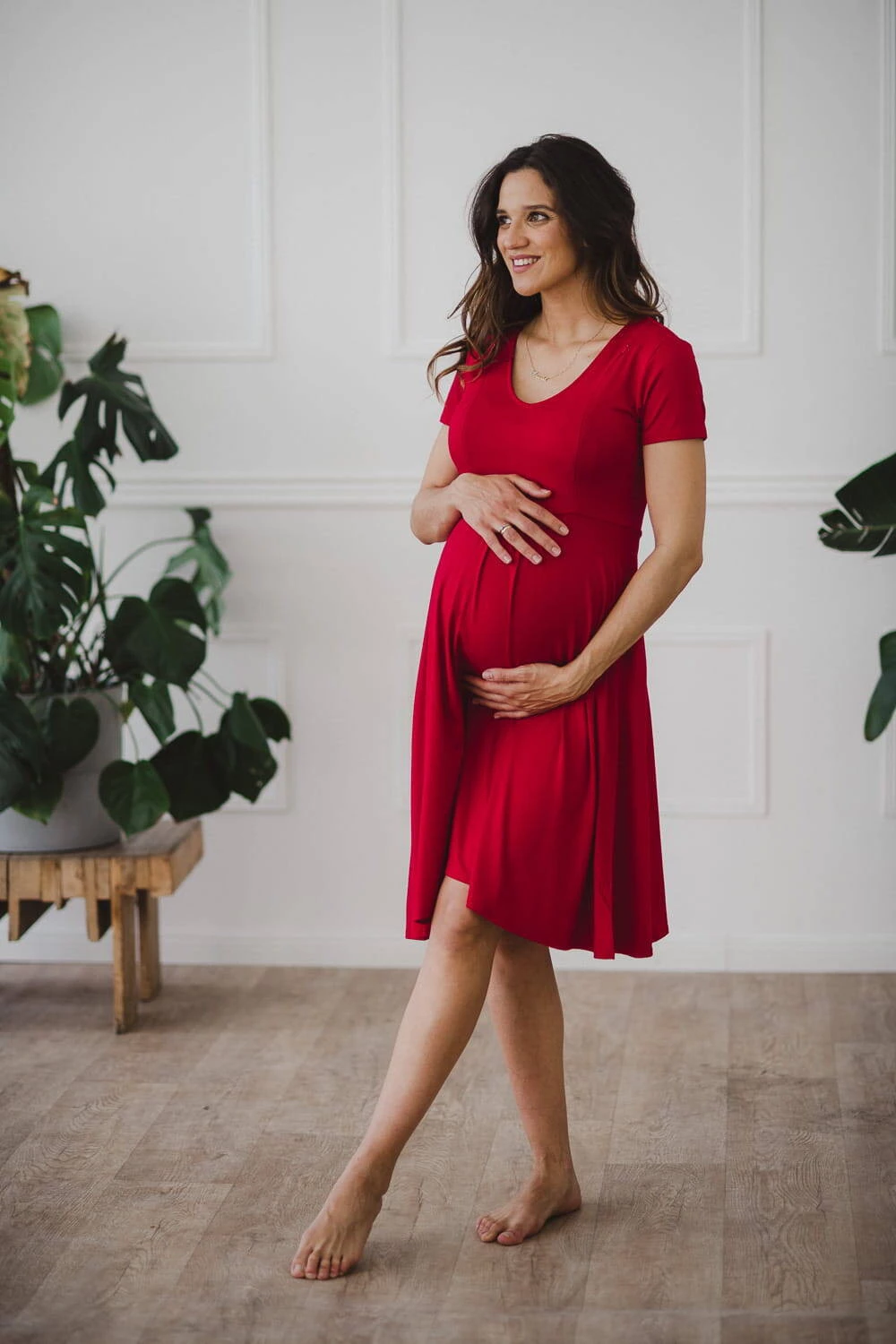 Mommy Chic Umstands- und Stillkleid – Karminrot