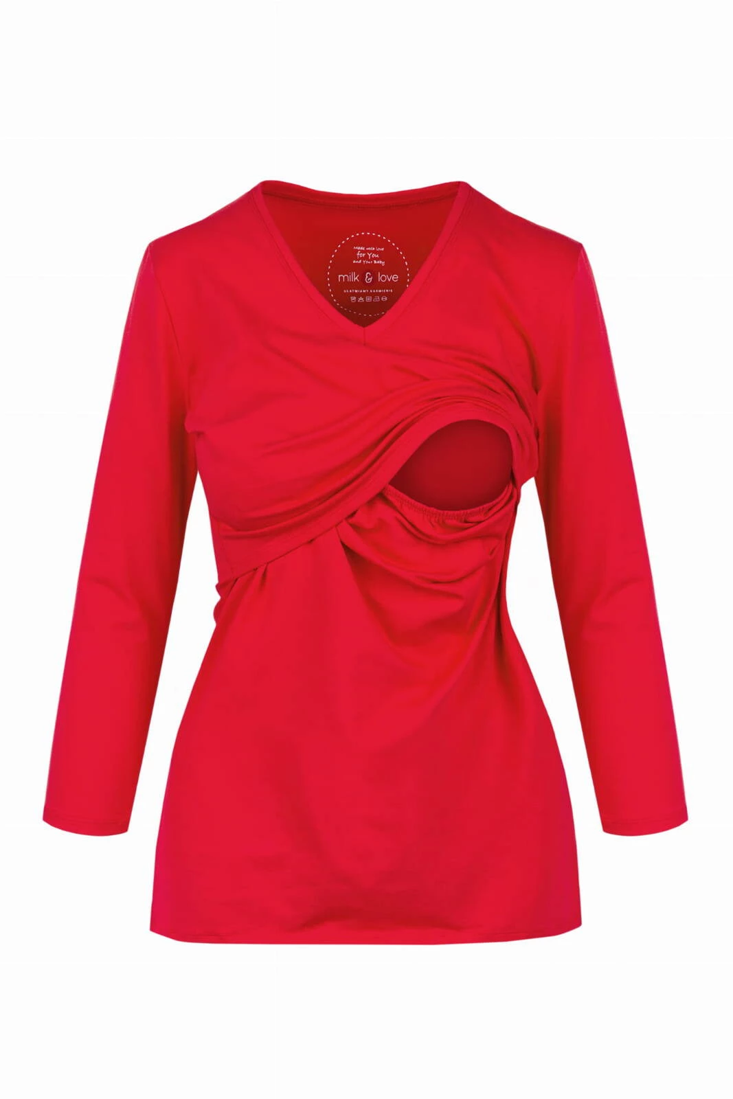 Rote Umstands- und Stillbluse „Milk Shirt“ mit V-Ausschnitt