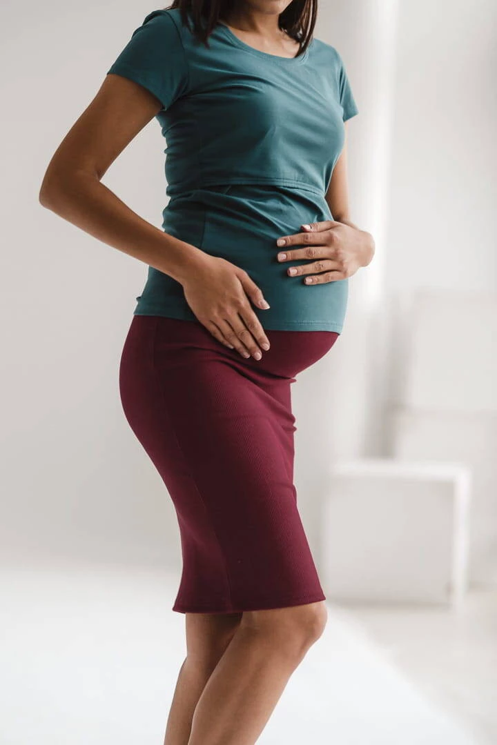Bauchgerippter Umstandsrock für Schwangere – Burgunderrot