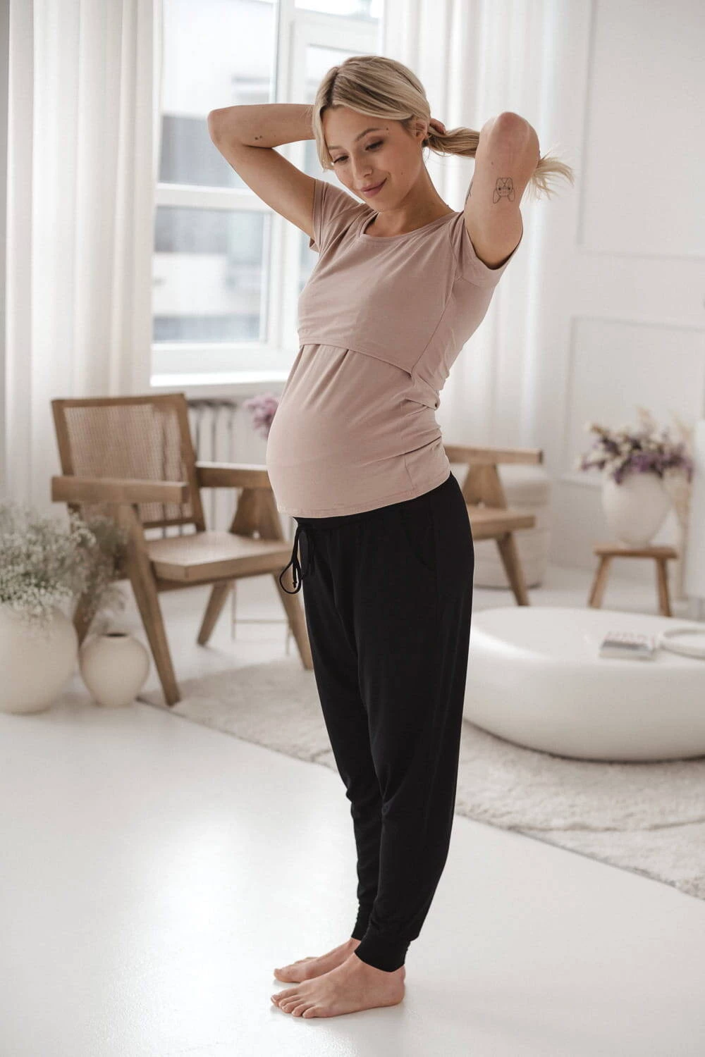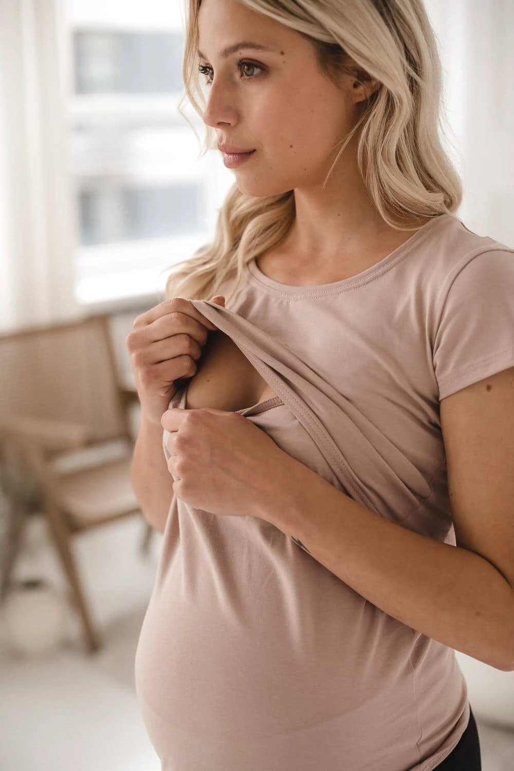 Umstands- und Stillbluse mit kurzen Ärmeln, Milk Shirt – Beige