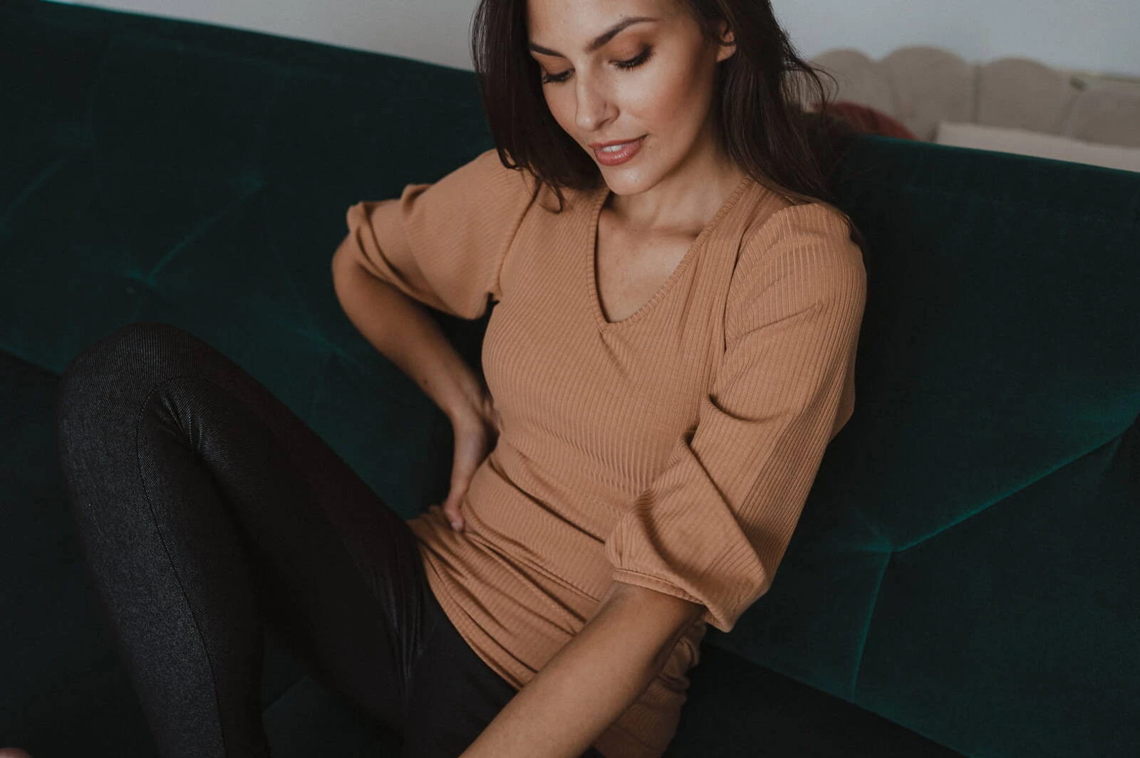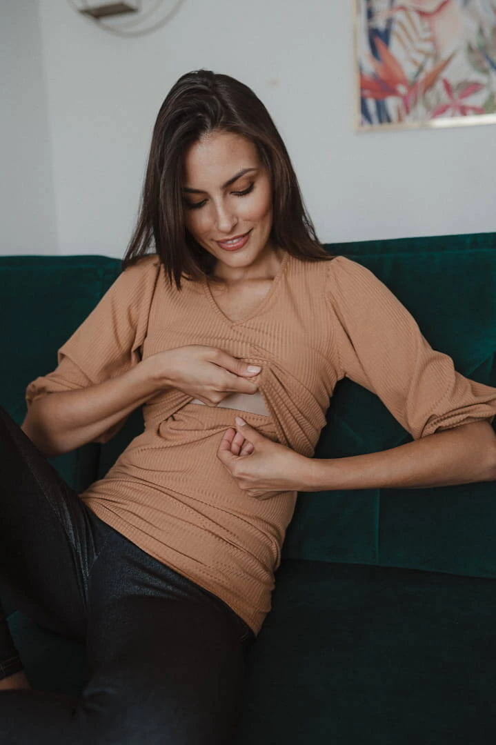 Dank unserer karamellfarbenen Umstandsbluse aus der Milky Puff-Kollektion fühlen Sie sich in jeder Situation sicher und stilvoll. Es ist eine ideale Wahl für Frauen, die ihren individuellen Stil auch während der Schwangerschaft und Stillzeit beibehalten möchten.