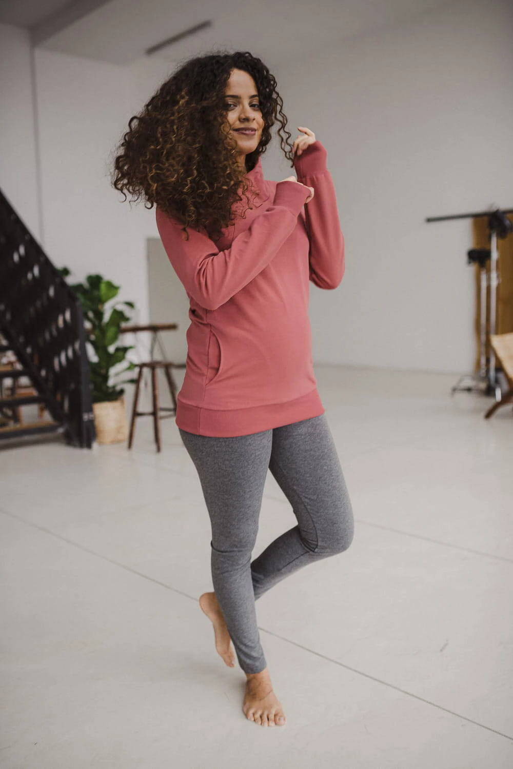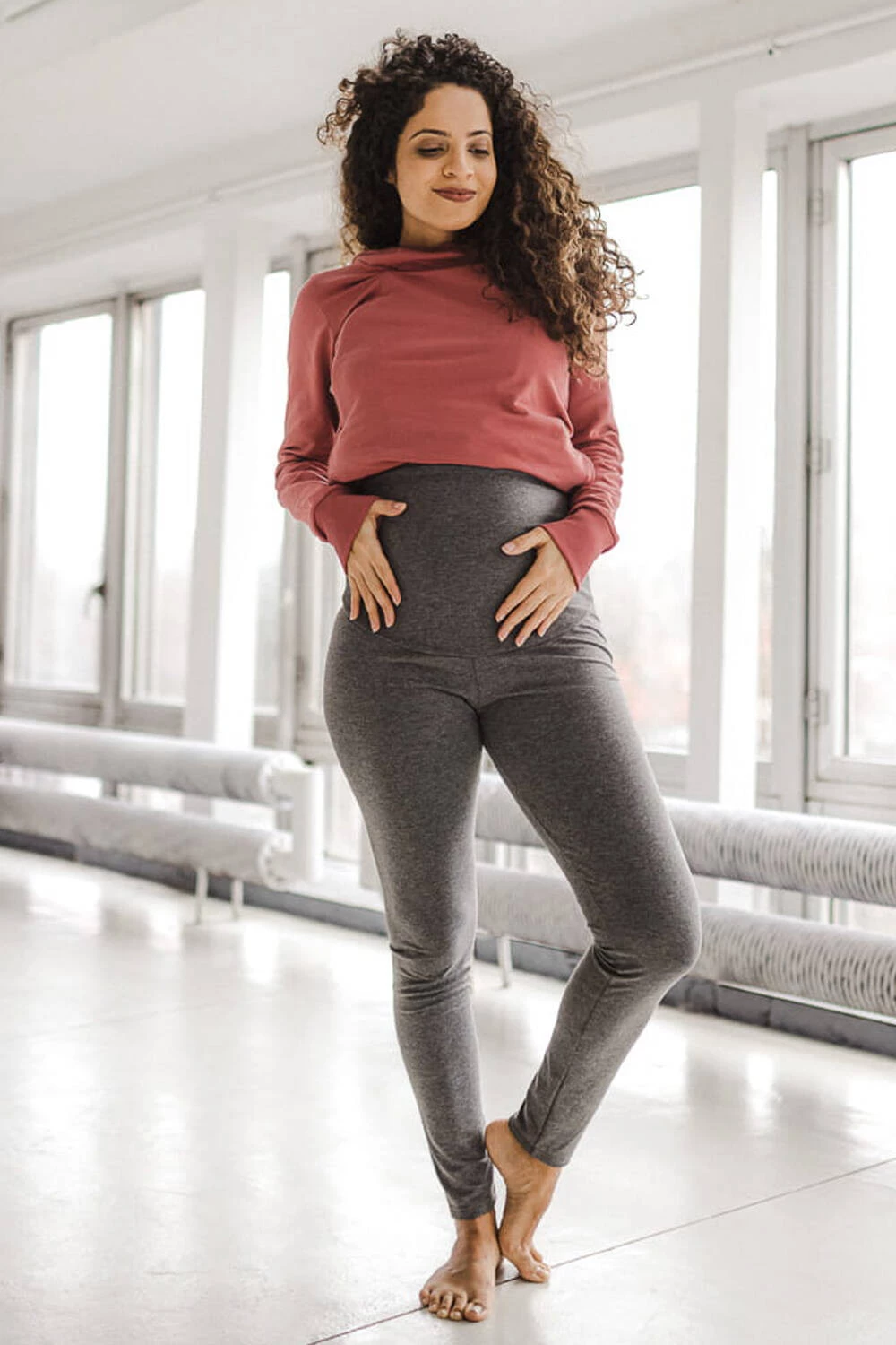 Umstandsleggings mit hoher Taille – Dunkelgrau meliert