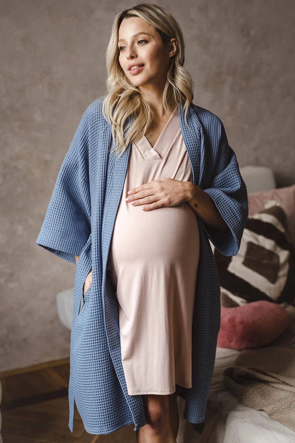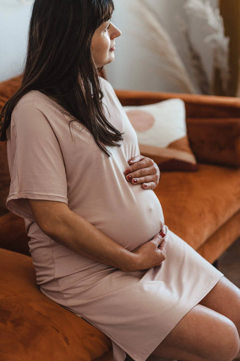 Das Umstandsnachthemd aus der Moon-Kollektion wurde sorgfältig in Polen und mit viel Liebe zum kleinsten Detail genäht. Das rosafarbene Moon-Shirt mit kurzen Ärmeln ist nicht nur ein praktisches Element während der Schwangerschaft, sondern auch ein Ausdruck von Komfort und Eleganz, der die zukünftige Mutter nicht nur während der Geburt, sondern auch während der einzigartigen Momente der Fütterung des Babys begleiten kann.
