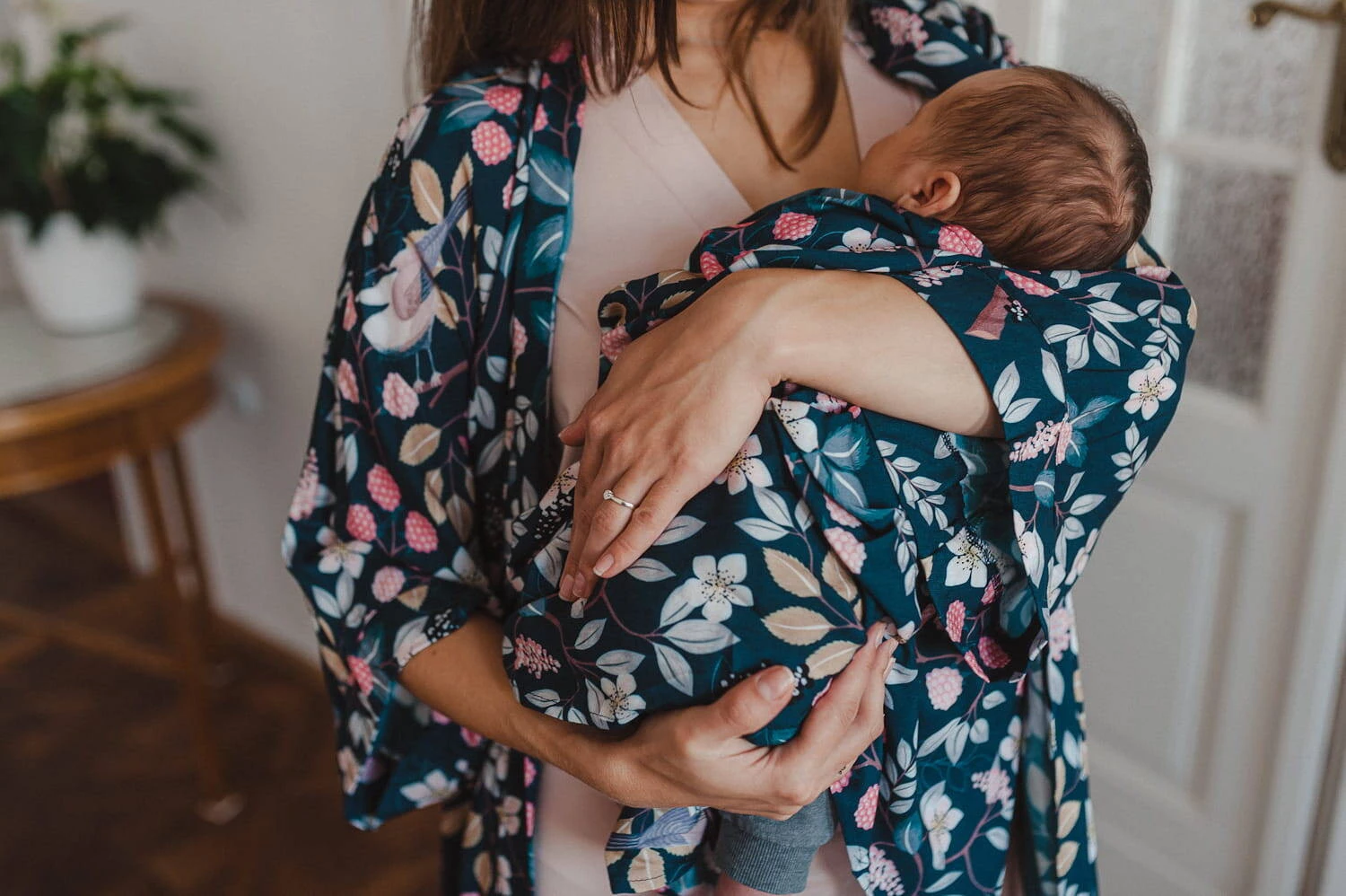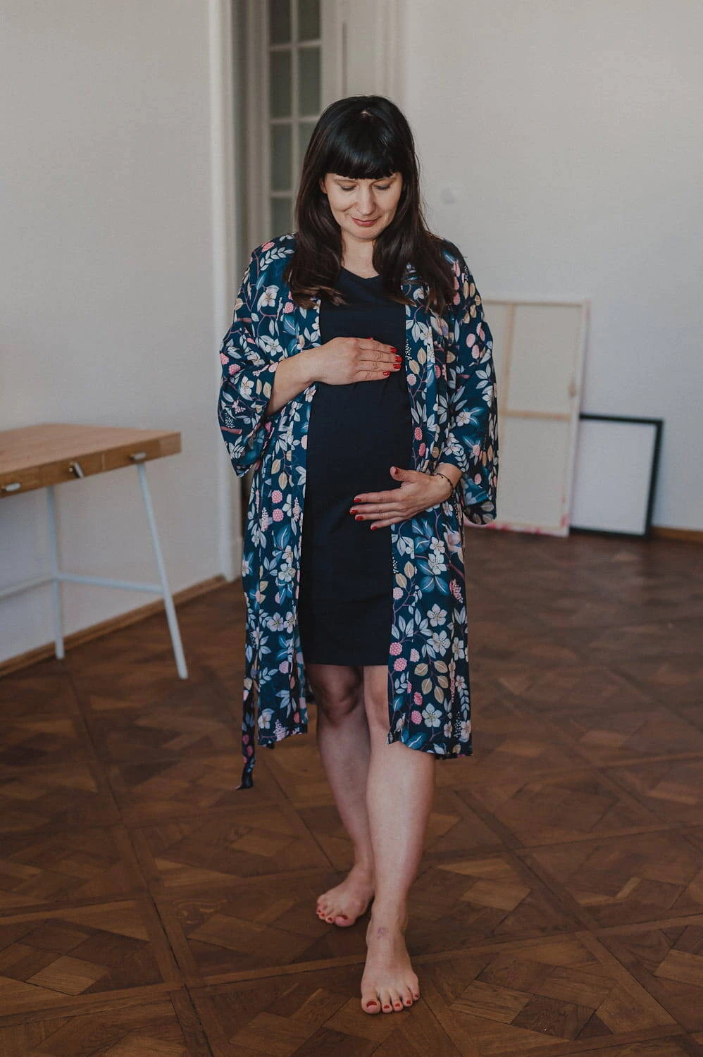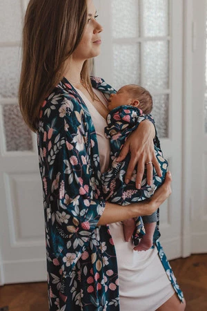 Ein traumhaft zarter und unglaublich femininer, bequemer Bademantel aus Bambusstoff, den Sie vom ersten Tragen an lieben werden. Unglaublich weicher Bambusstoff schmiegt sich sowohl während der Schwangerschaft als auch nach der Geburt an Ihren Körper. Ein wunderschönes, feminines Muster auf grünem Hintergrund verleiht Energie und regt die Sinne an. Das im Kimono-Stil gefertigte Krankenhauskleid ist so konzipiert, dass es sich perfekt an die sich verändernde Körperform während der Schwangerschaft und nach der Geburt anpasst. Ausreichend lang, ideal sowohl für die Schwangerschaft als auch für die anspruchsvolle Zeit nach der Geburt. 7/8-Ärmel, damit sie die alltäglichen Aktivitäten im Zusammenhang mit der Pflege eines Neugeborenen nicht beeinträchtigen. Hergestellt aus hochwertigstem, atmungsaktivem Stoff aus 100 % Bambus, der strenge Tests gemäß Öko-Tex Standard 100 bestanden hat. Sowohl der Stoff als auch der Umstandsbademantel für Krankenhaus und Alltag wurden in Polen von der polnischen Marke Milk & hergestellt. Liebe!