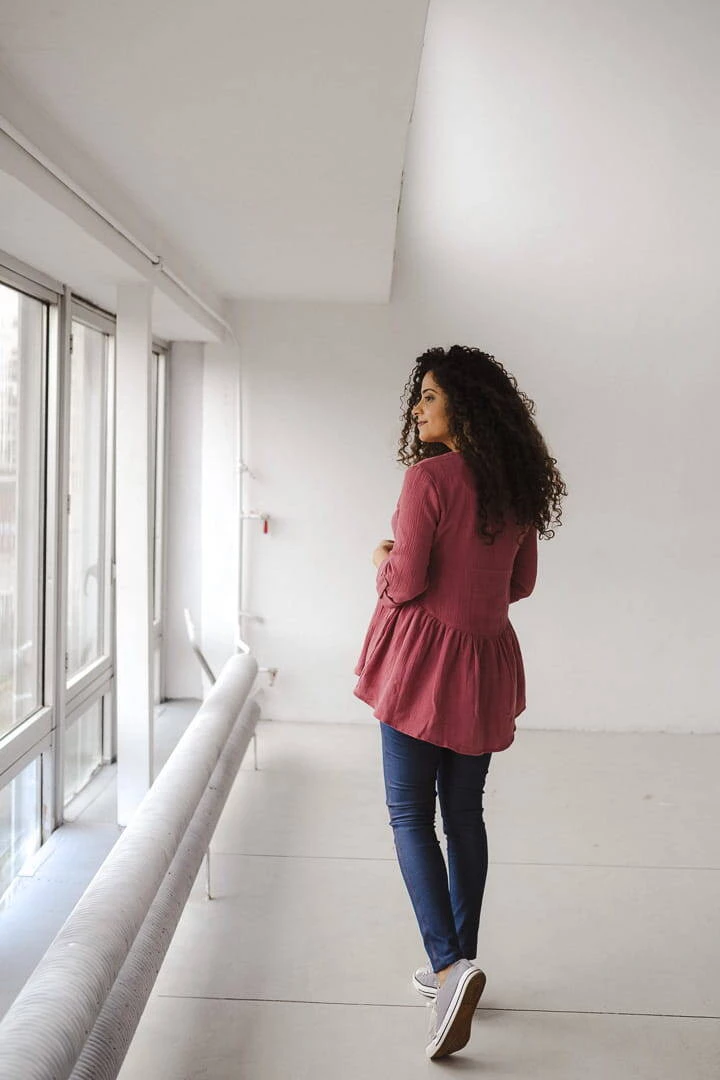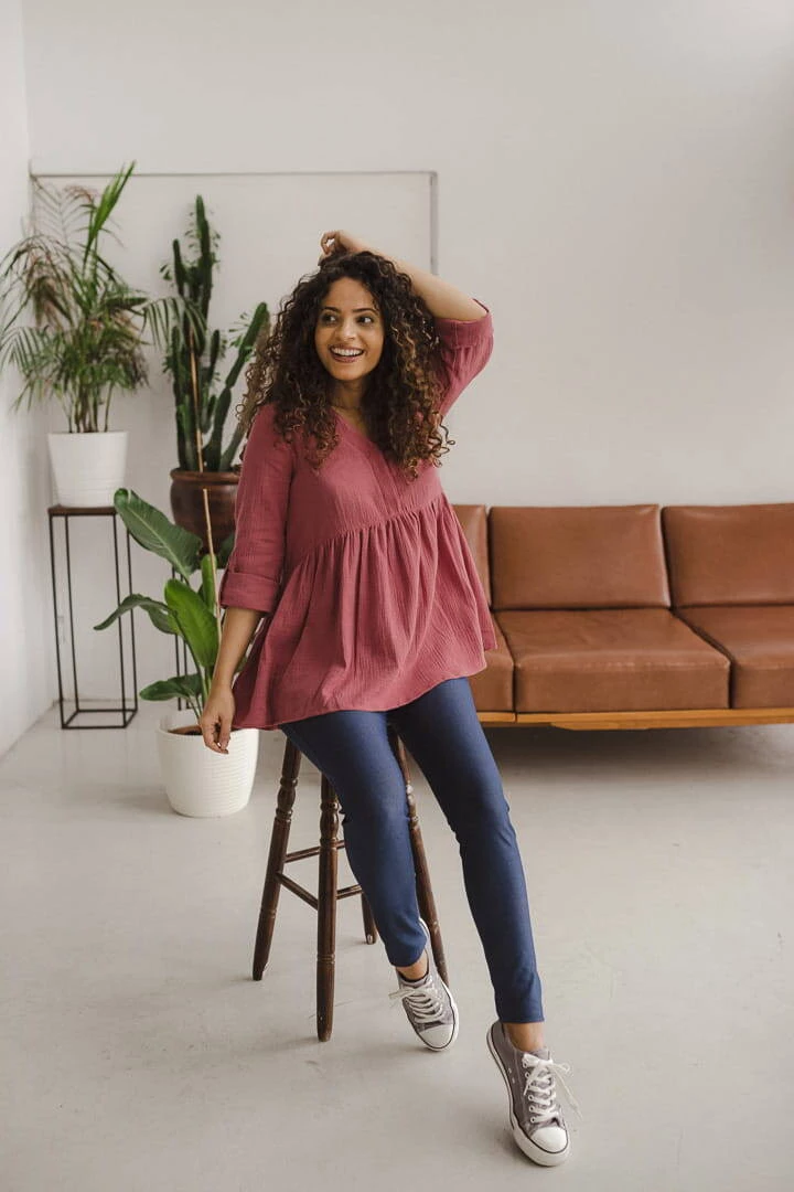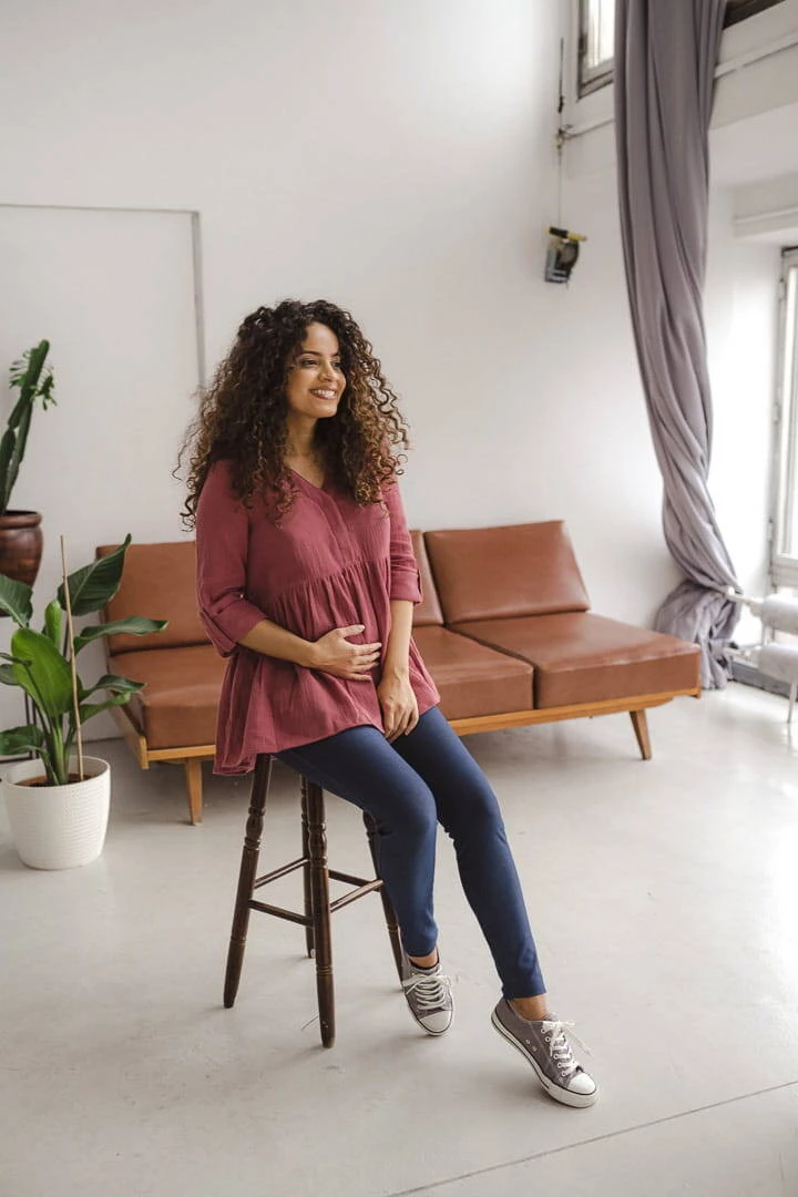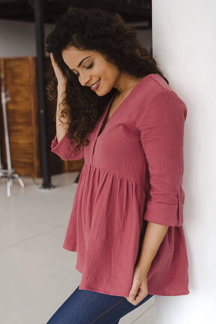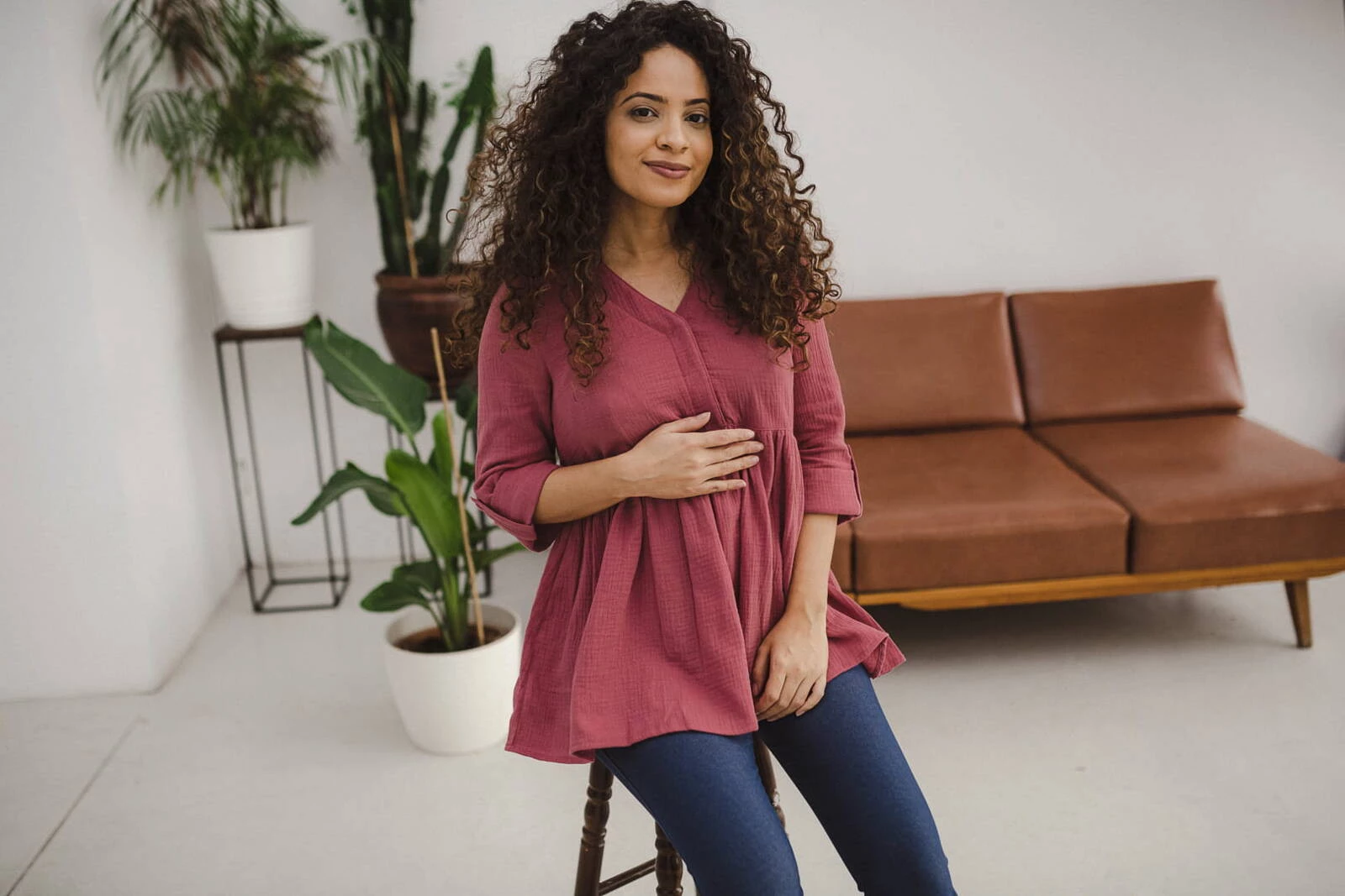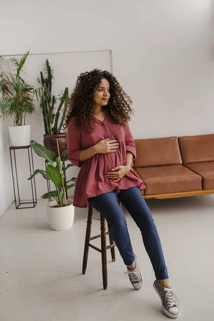 GOTS Mother Nature Umstandstunika aus Bio-Musselin – Dusty Cedar