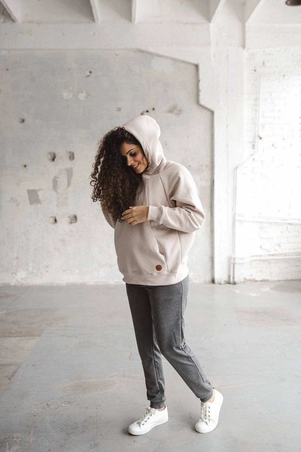 Haltbarkeit: Das Sweatshirt ist nach den Prinzipien der Slow Fashion gestaltet und kann daher noch viele Jahre getragen werden, auch nach dem Ende der Stillzeit.