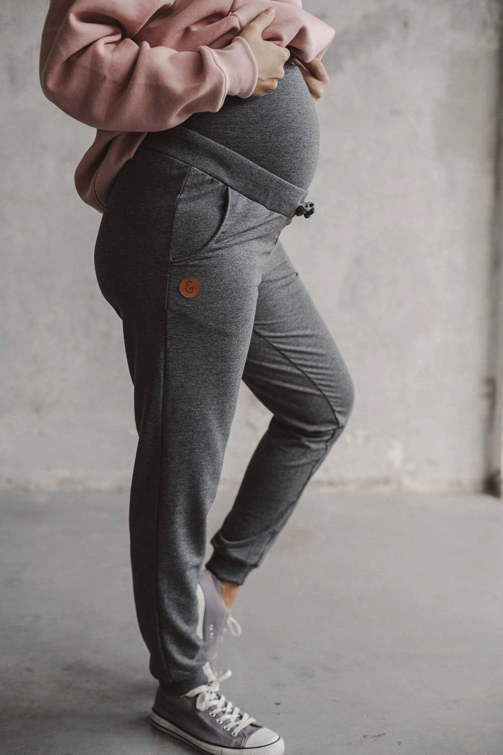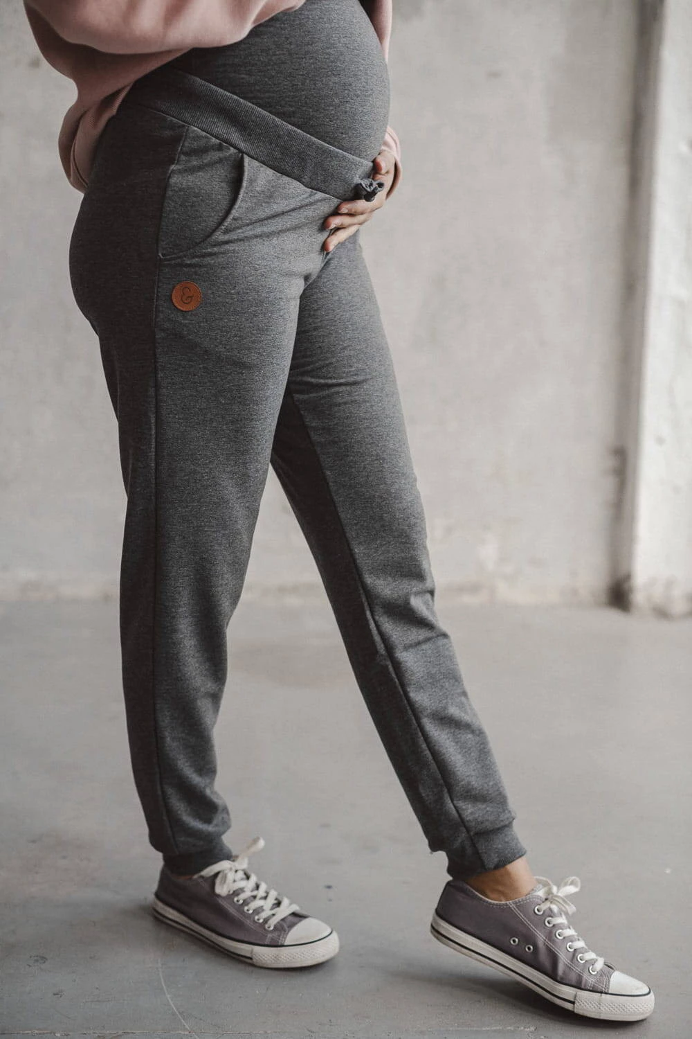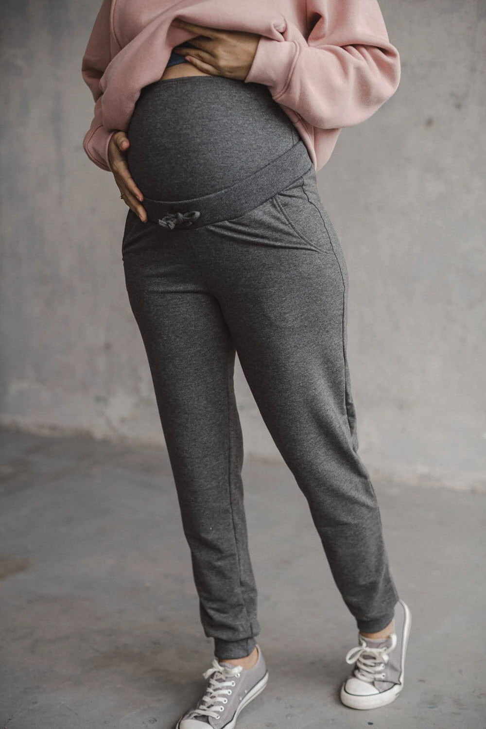 Graue Umstands-Jogginghosen sind ein Angebot für Frauen, die Wert auf ein tolles Outfit, Funktionalität und hohe Qualität legen. Umstandshosen für werdende Mütter, die auf Komfort ausgelegt sind, eignen sich sowohl während der Schwangerschaft als auch nach der Schwangerschaft perfekt. Dank des Umstandseinsatzes und der Kordelzugregulierung dieser vielseitigen Hose können Sie sich frei bewegen, ohne den Bauch einzuengen, was in dieser einzigartigen Zeit zu einem hohen Tragekomfort führt.