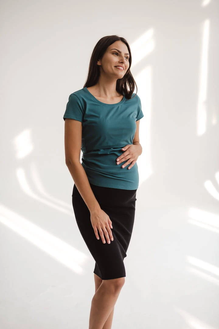 Umstands- und Stillbluse mit kurzen Ärmeln Milk Shirt – Türkis