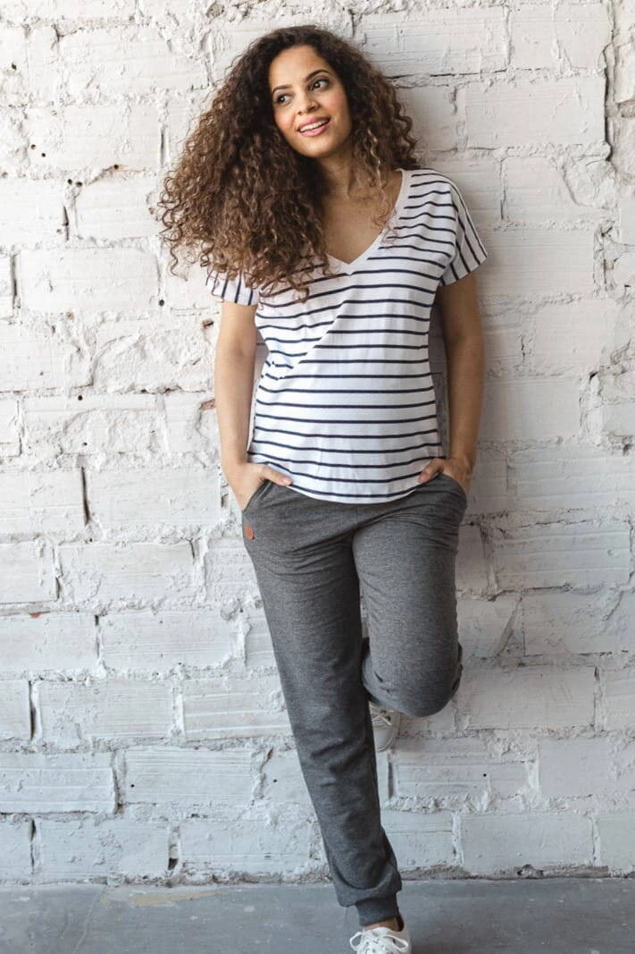 Two Ways wendbare Umstands- und Stillbluse mit kurzen, gestreiften Ärmeln