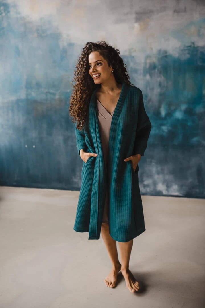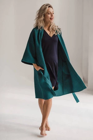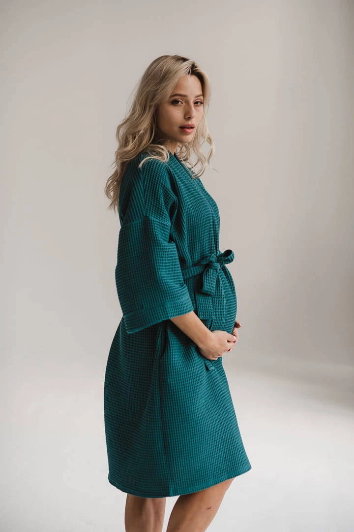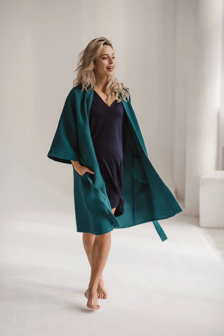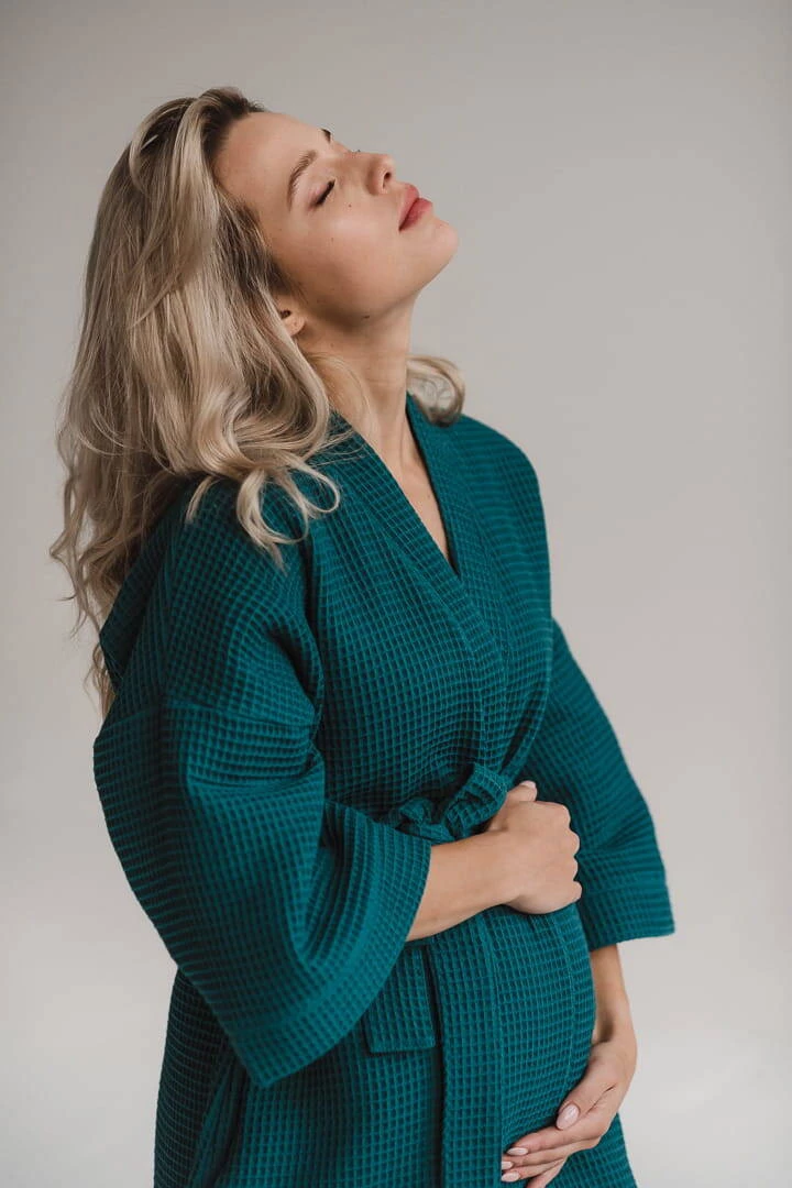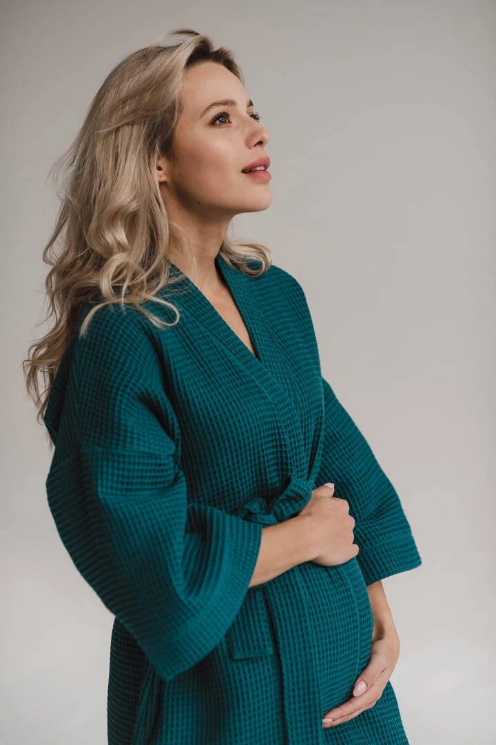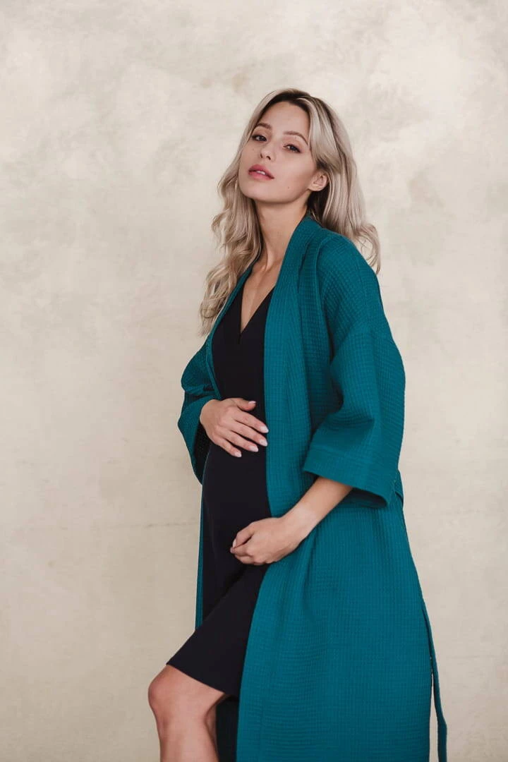 Warmer Umstandsbademantel aus Baumwolle mit Waffelmuster, dunkles Seegrün