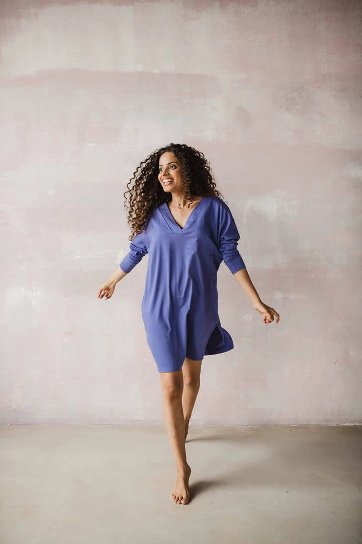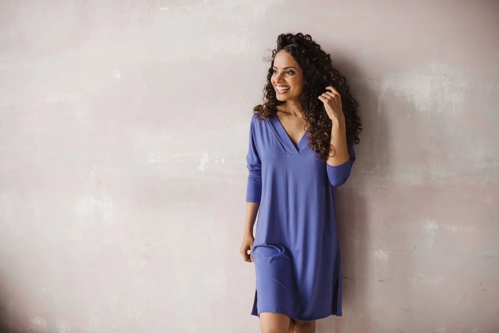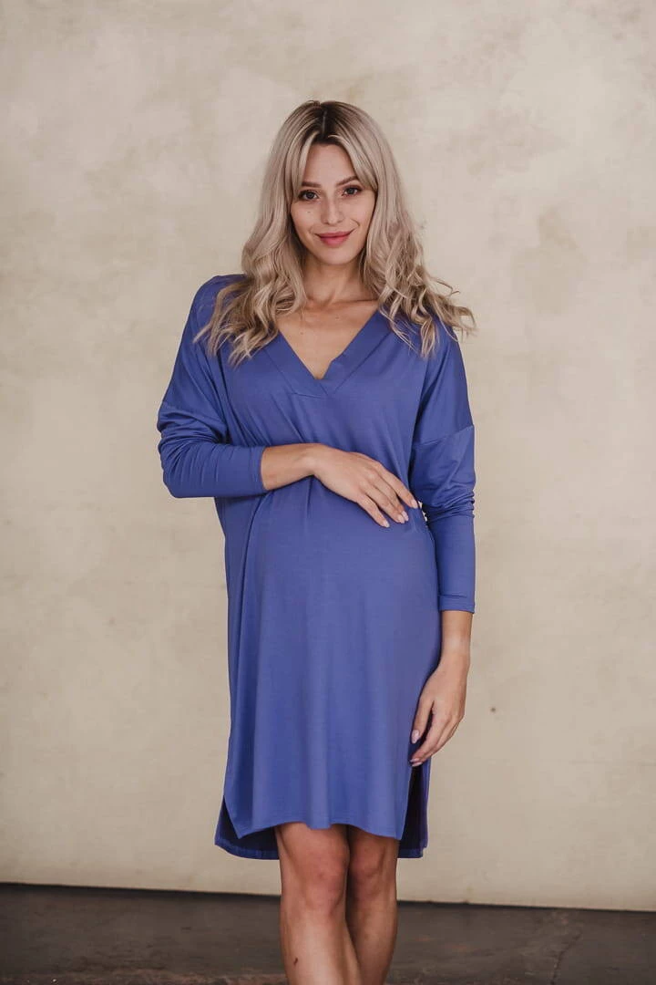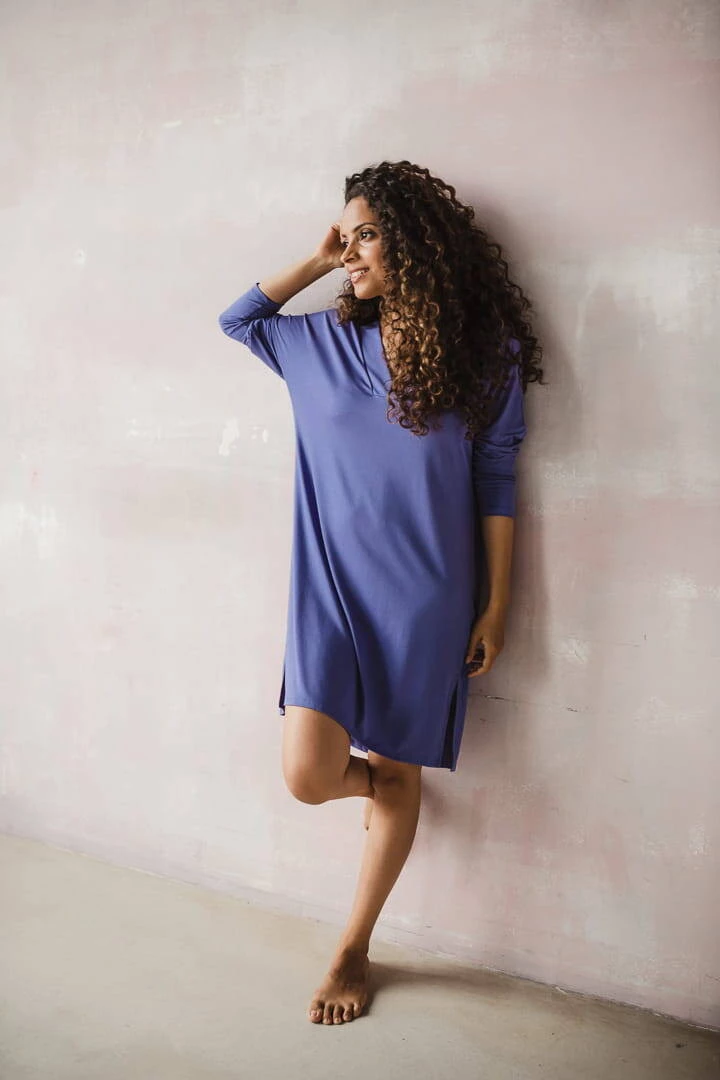 Umstands- und Stillnachthemd Moon Very Peri aus Bambus mit langen Ärmeln