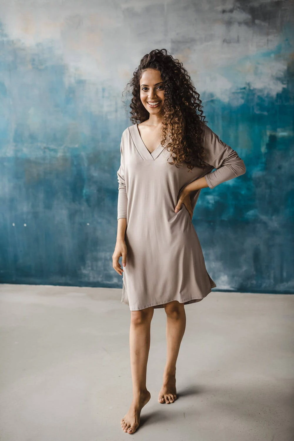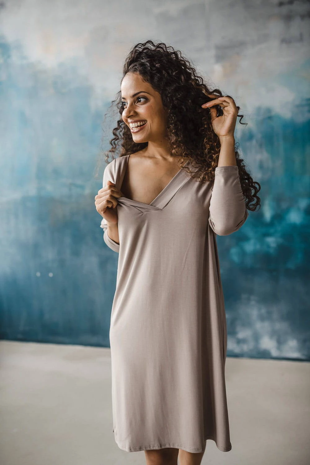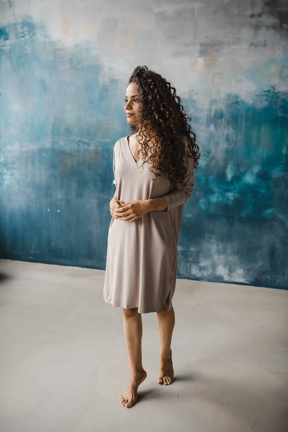 Moon Umstands- und Stillnachthemd aus Bambus – Beige
