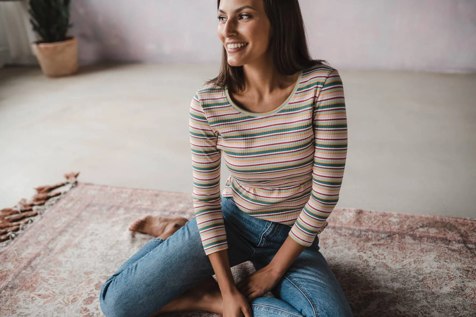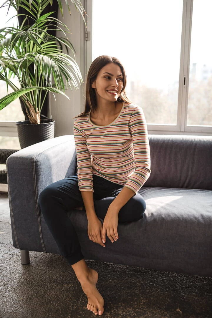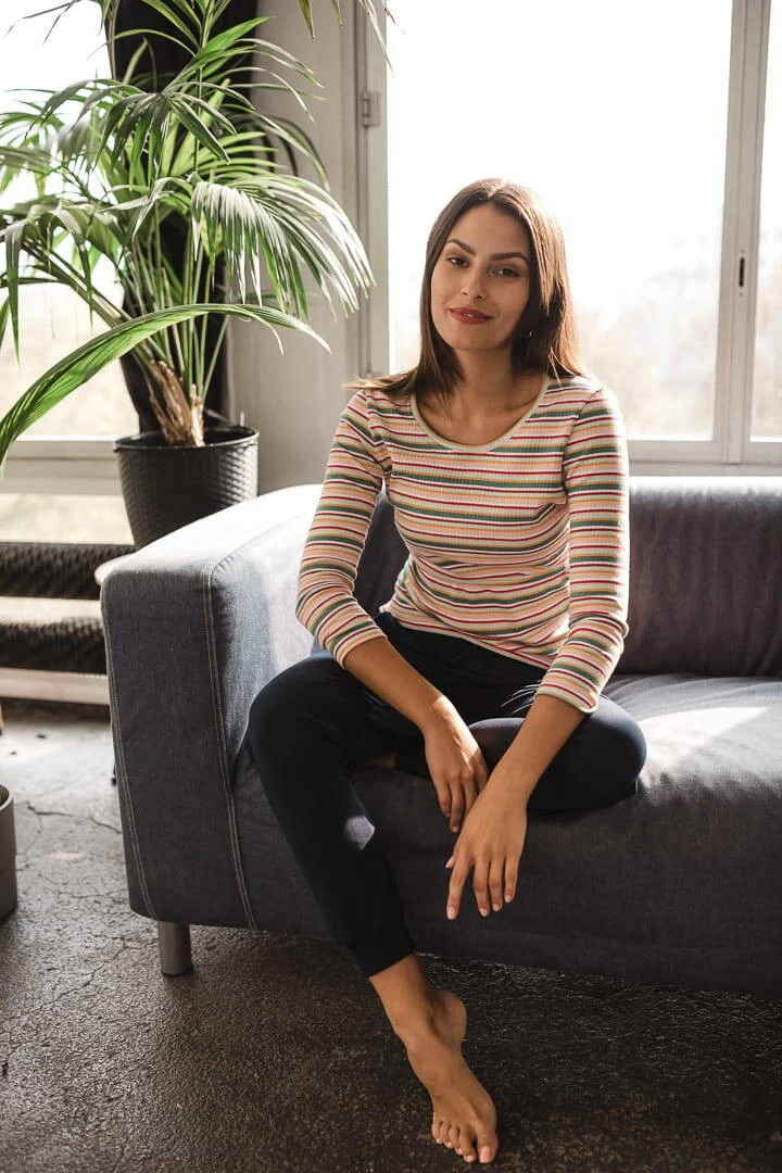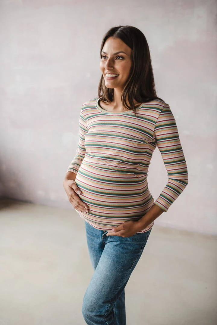 Eine modische und bequeme Umstandsbluse mit 7/8-Ärmeln und Streifen ist das perfekte Outfit für jeden Anlass ab dem ersten Trimester der Schwangerschaft. Auf beiden Seiten des Bauches haben Damen-Umstandsblusen ein eingenähtes Panel, das sich dem Schwangerschaftsbauch und den Veränderungen des Körpers anpasst. Im Oberteil der Umstandsbluse für Schwangere ist ein spezielles, nach oben klappbares Panel eingenäht, mit dem Sie das Neugeborene einfach und schnell füttern können. Perfekte Umstands- und Stillblusen bieten Ihnen Bequemlichkeit und Komfort während der Schwangerschaft und später in der Stillzeit. Der Komfort der werdenden Mutter ist sehr wichtig, daher lohnt es sich, in Kleidung zu investieren, die ihn gewährleistet. Wählen Sie farbenfrohe Blusen für Schwangere und erleben Sie, wie bequem Umstandsblusen sein können, wenn der Körper nach der Schwangerschaft wieder in seine Form zurückkehrt.
