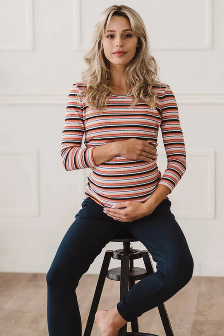 Zu Ihrer Umstandsgarderobe gehören stilvolle Umstandsblusen, die zu jedem Anlass passen. Eine Damen-Umstandsbluse mit marineblauen Streifen ist für jede Frau eine funktionelle und schöne Wahl, die Sie ab Beginn der Schwangerschaft in jeder Situation begleiten kann. Ob zur Arbeit oder zum Spaziergang: Umstandsblusen für stillende Mütter mit bequemem Streifen sind eine zeitlose klassische Lösung, die Ihren Bauch bedeckt und Ihnen den Komfort und die Bequemlichkeit bietet, die Sie jetzt brauchen.