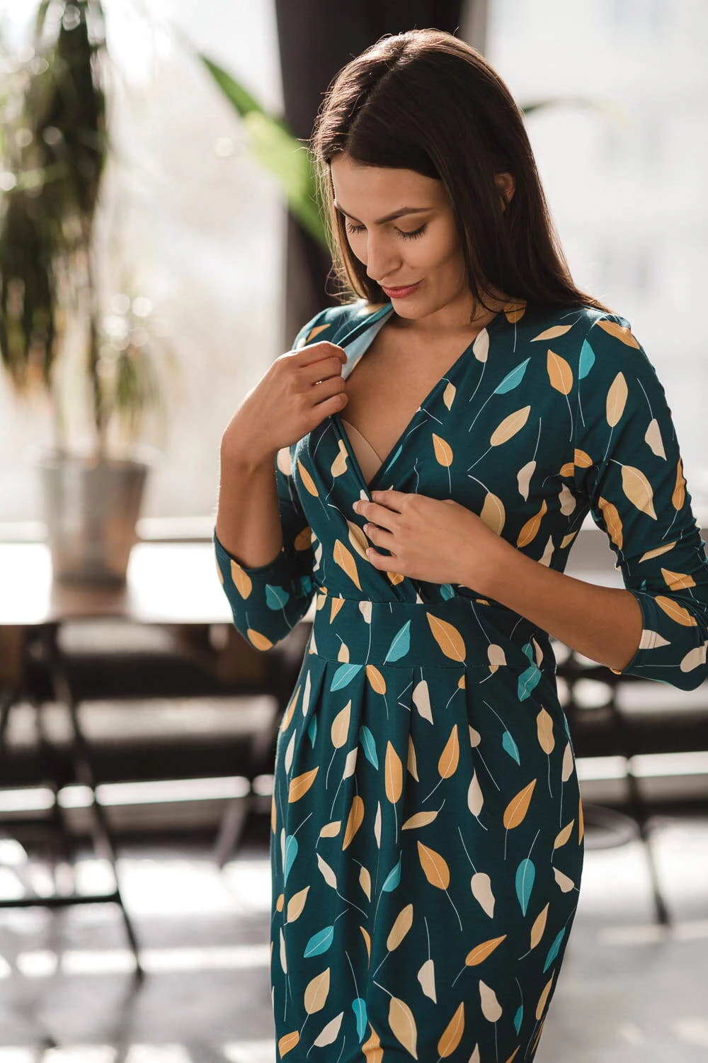 Grow with me Umstands- und Still-Wickelkleid – Türkis mit Blättern